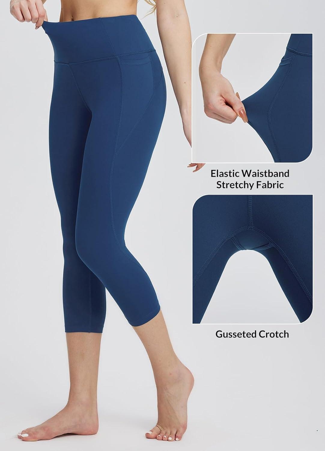 BALEAF Women's Knee Length Leggings High Waisted Yoga Workout Exercise Capris for Casual Summer with Pockets