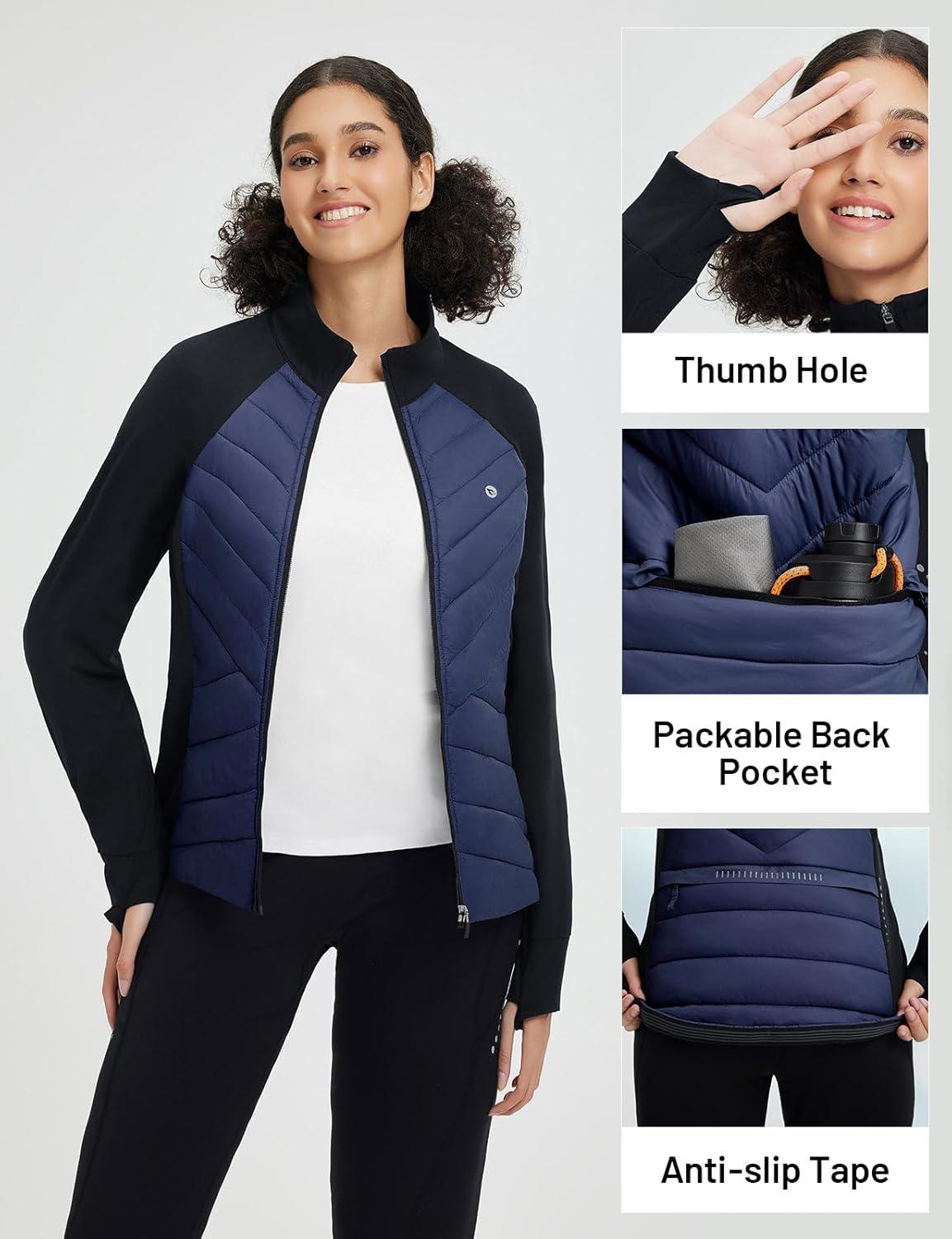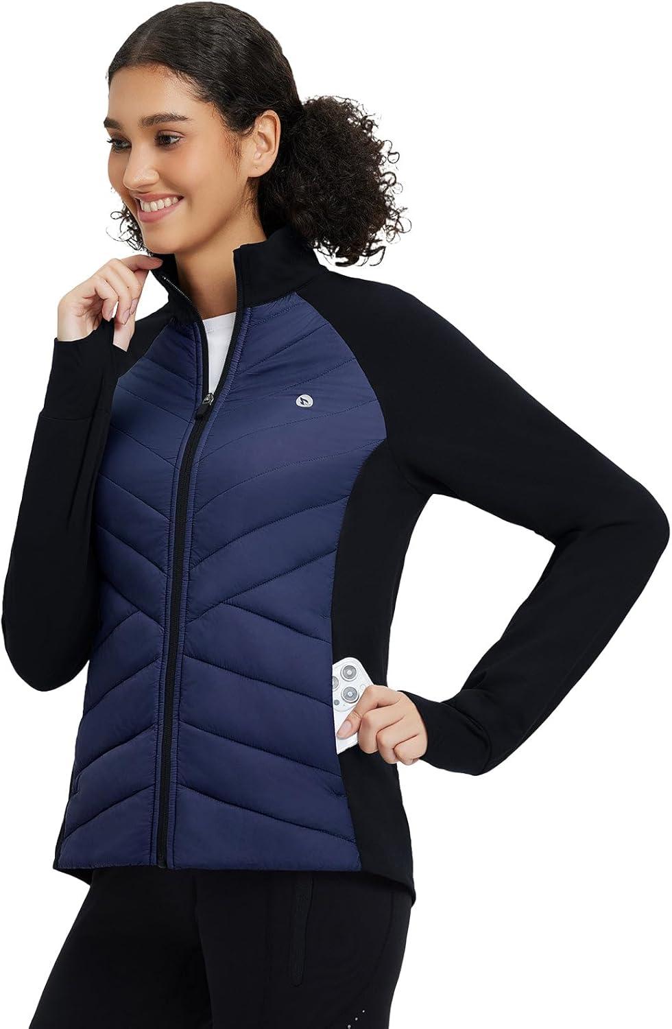 baleaf Women’s Cycling Puffer Jacket Winter Warm Lightweight Insulated Hiking Jackets Zip Pockets Running Skiing(Blue/Black)