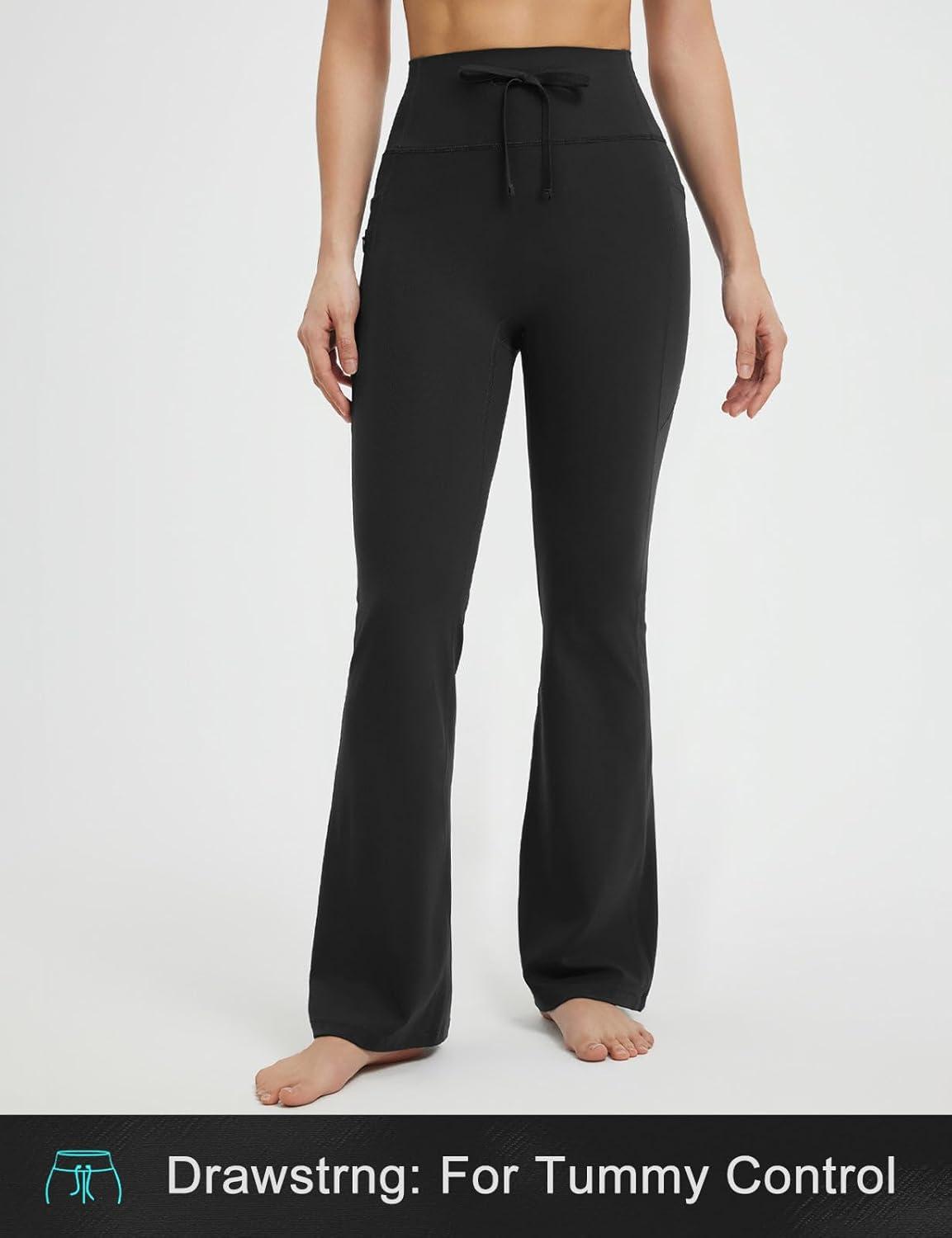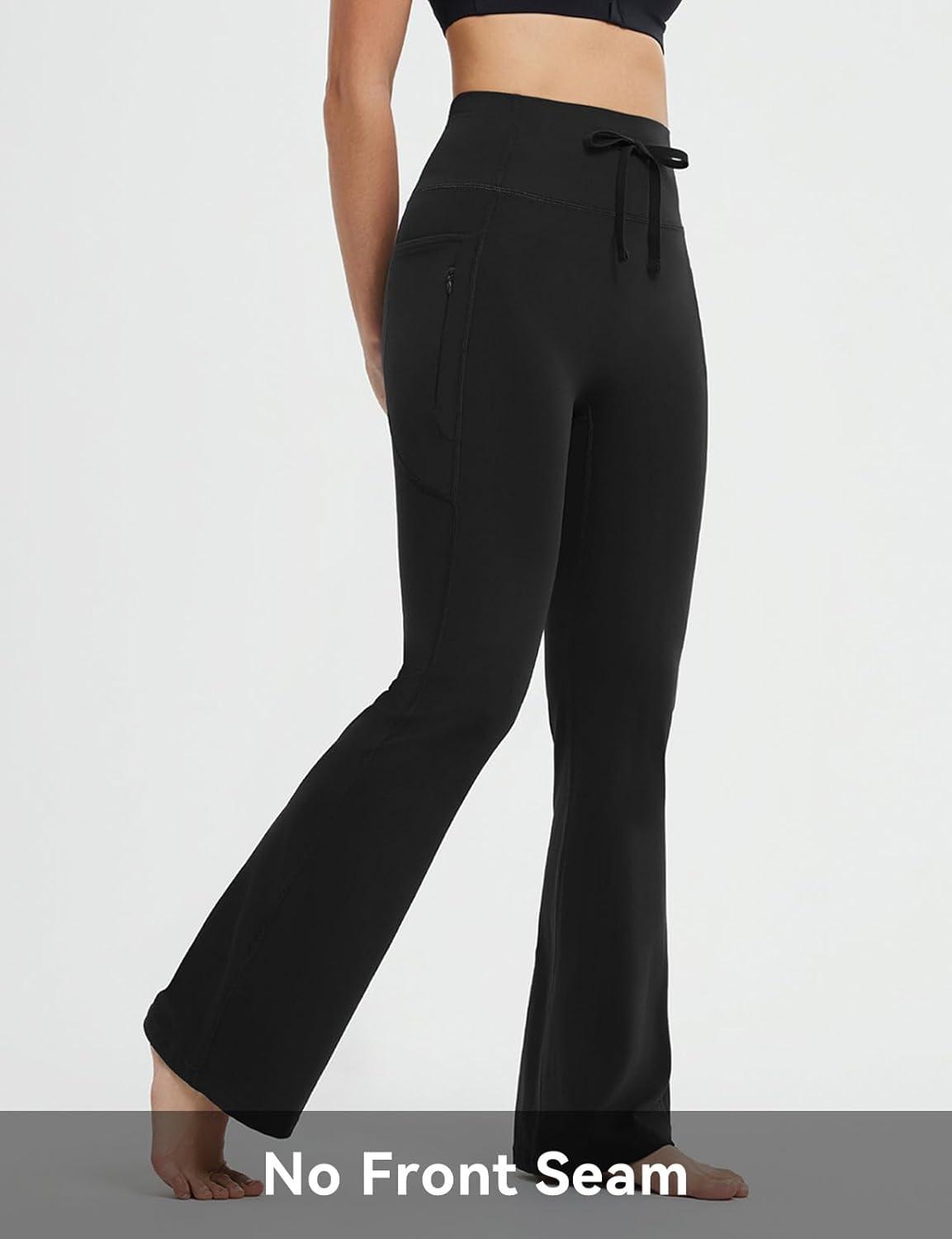 imagebaleaf Womens Flare Leggings with Zipper Pockets Drawstring Flared Yoga Pants Bell Bottom Leggings Tummy ControlBlack