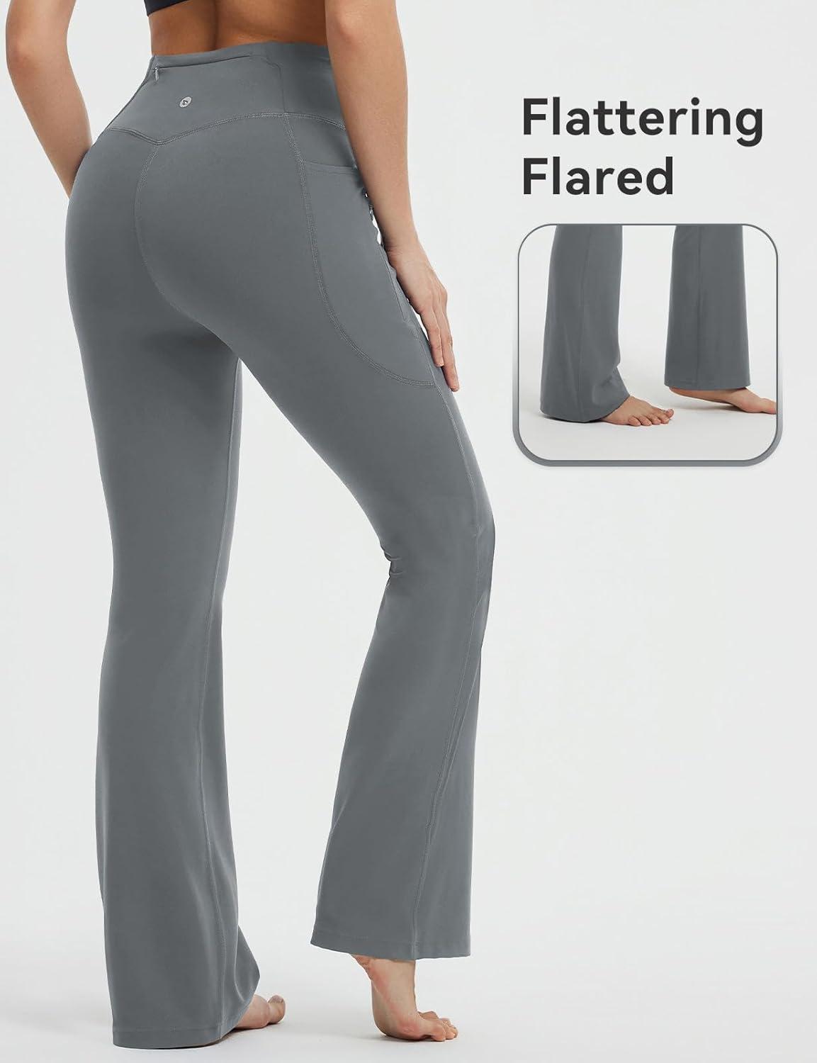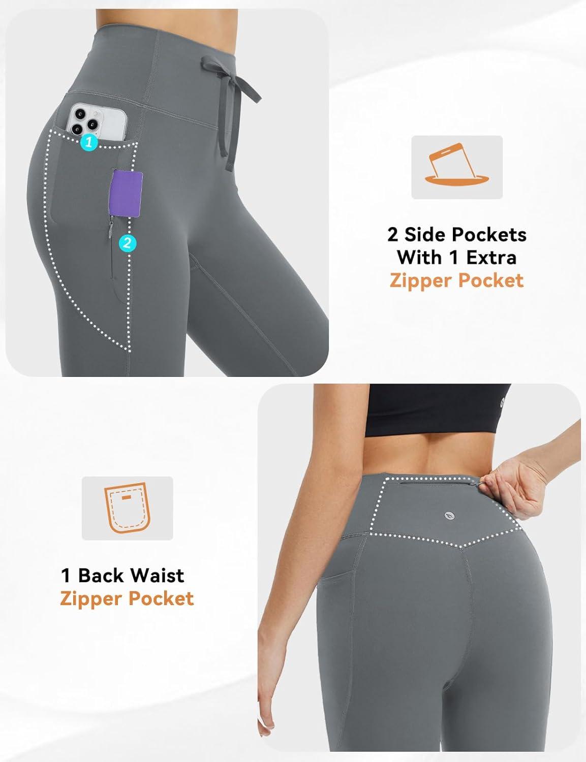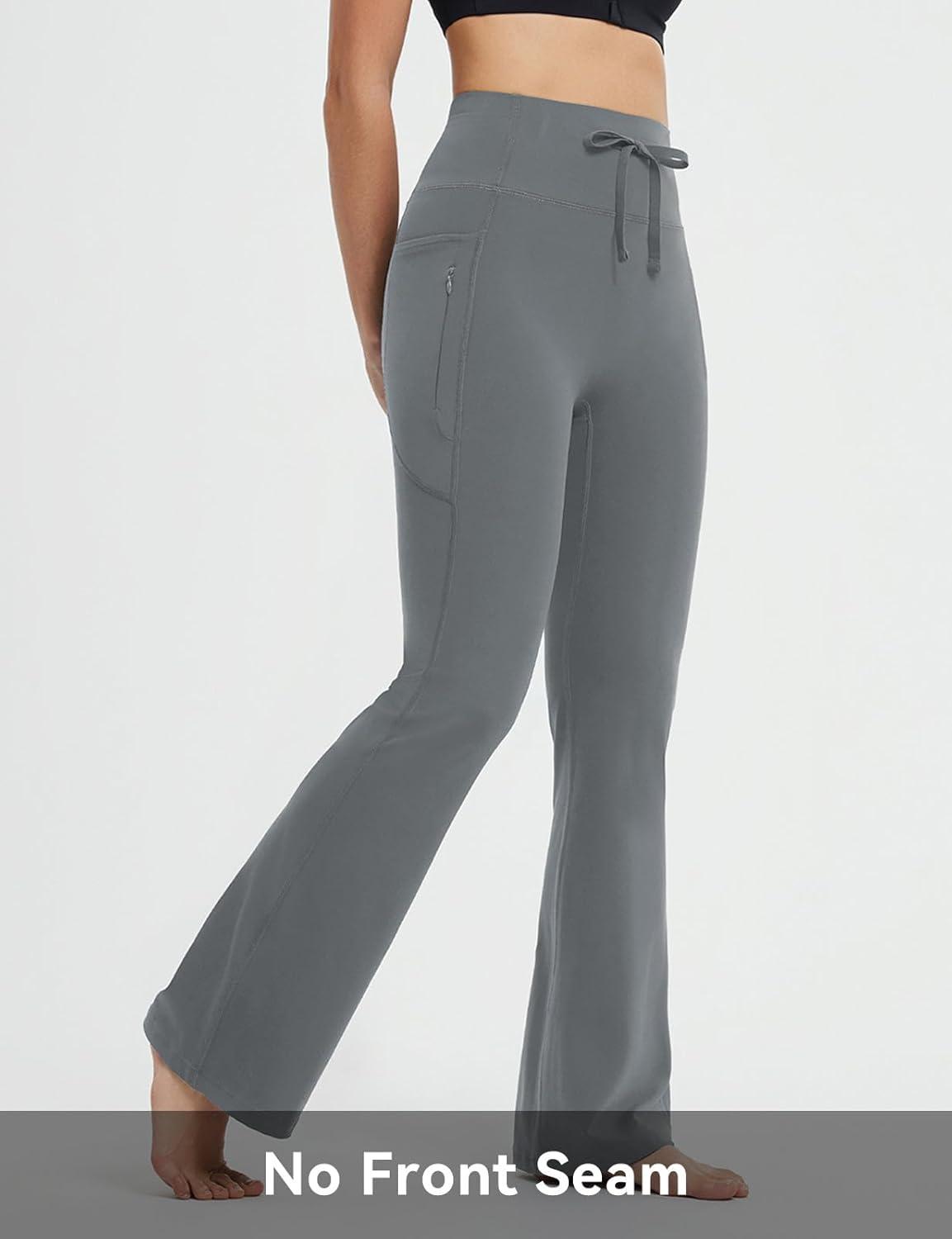 baleaf Womens Flare Leggings with Zipper Pockets Drawstring Flared Yoga Pants Bell Bottom Leggings Tummy Control(Dark Grey)