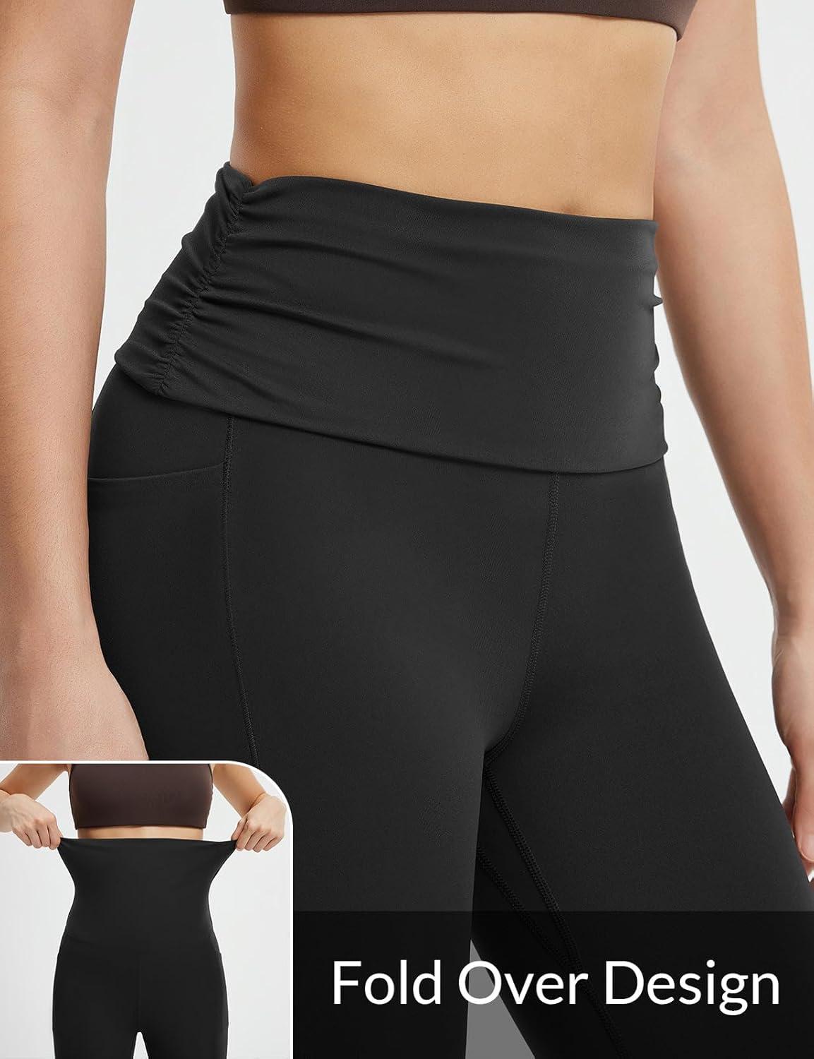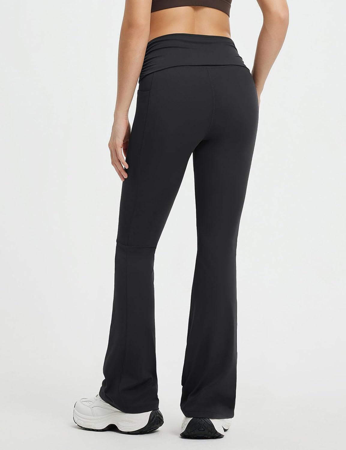 baleaf Womens Flare Yoga Pants Fold Over Flared Leggings with Pockets Tummy Control Bootcut Pants(Black)