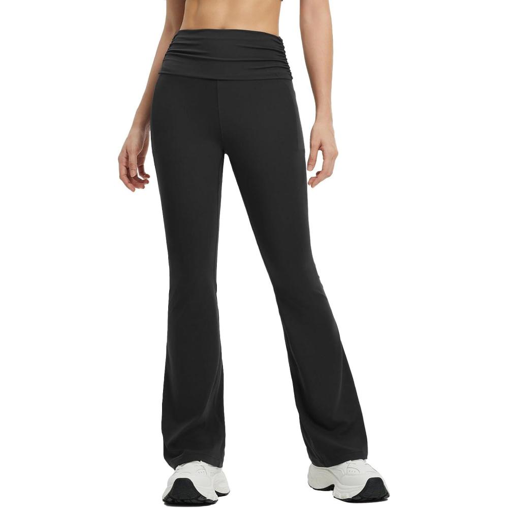 imagebaleaf Womens Flare Yoga Pants Fold Over Flared Leggings with Pockets Tummy Control Bootcut PantsBlack