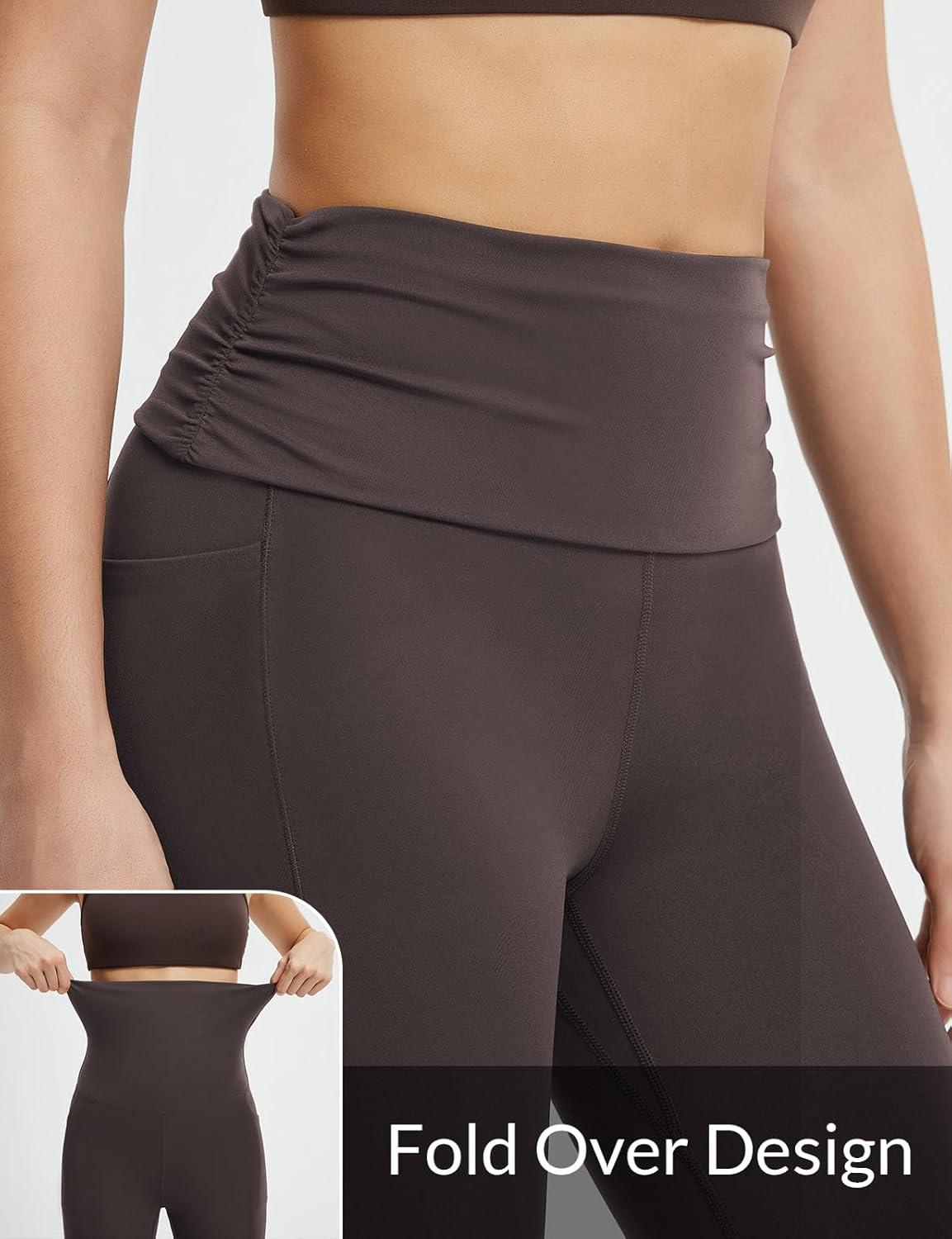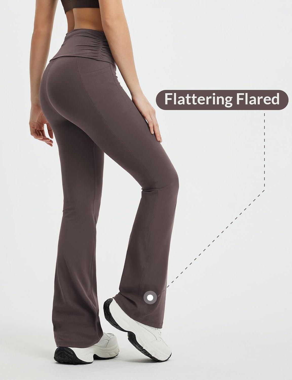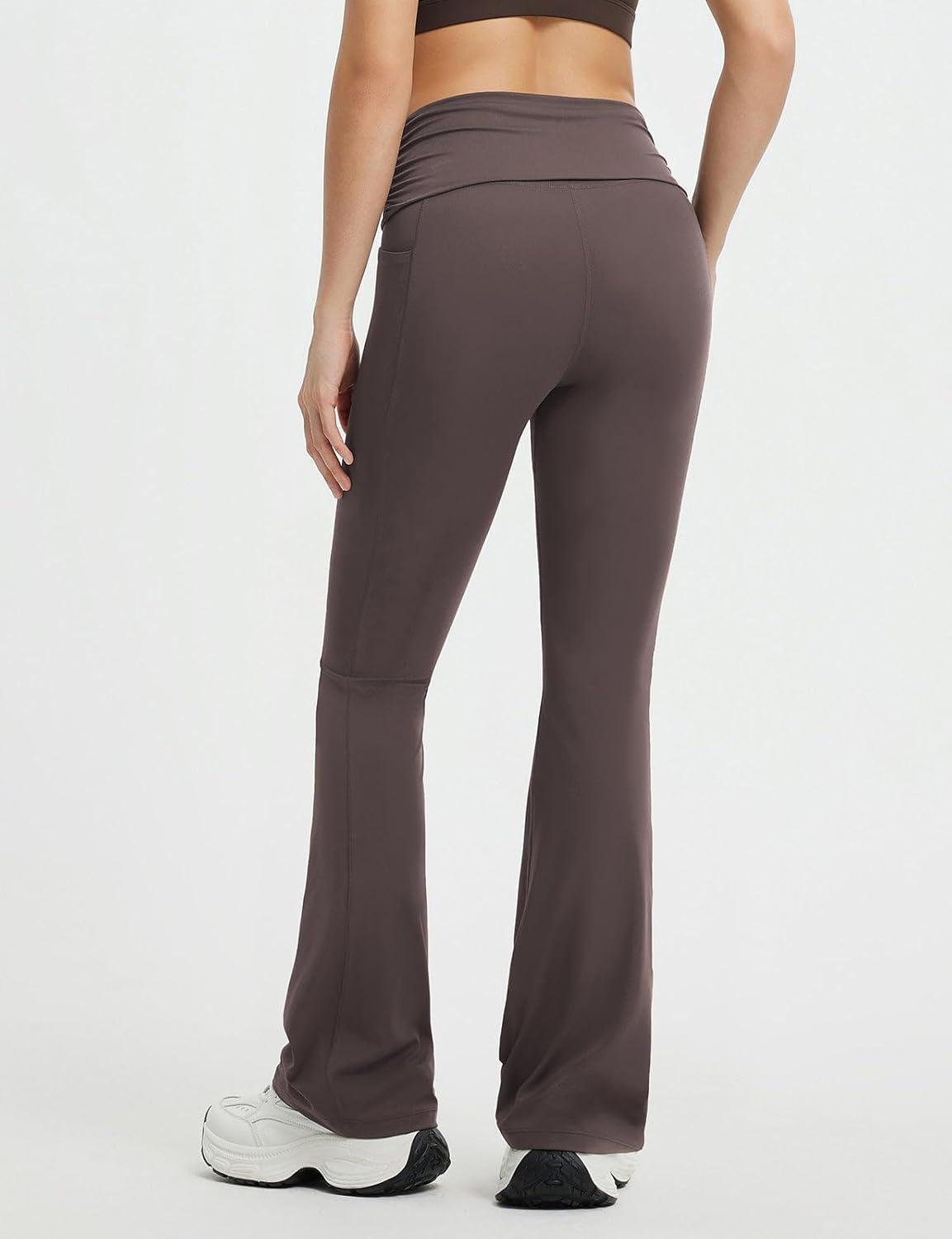 baleaf Womens Flare Yoga Pants Fold Over Flared Leggings with Pockets Tummy Control Bootcut Pants(Seal Brown)