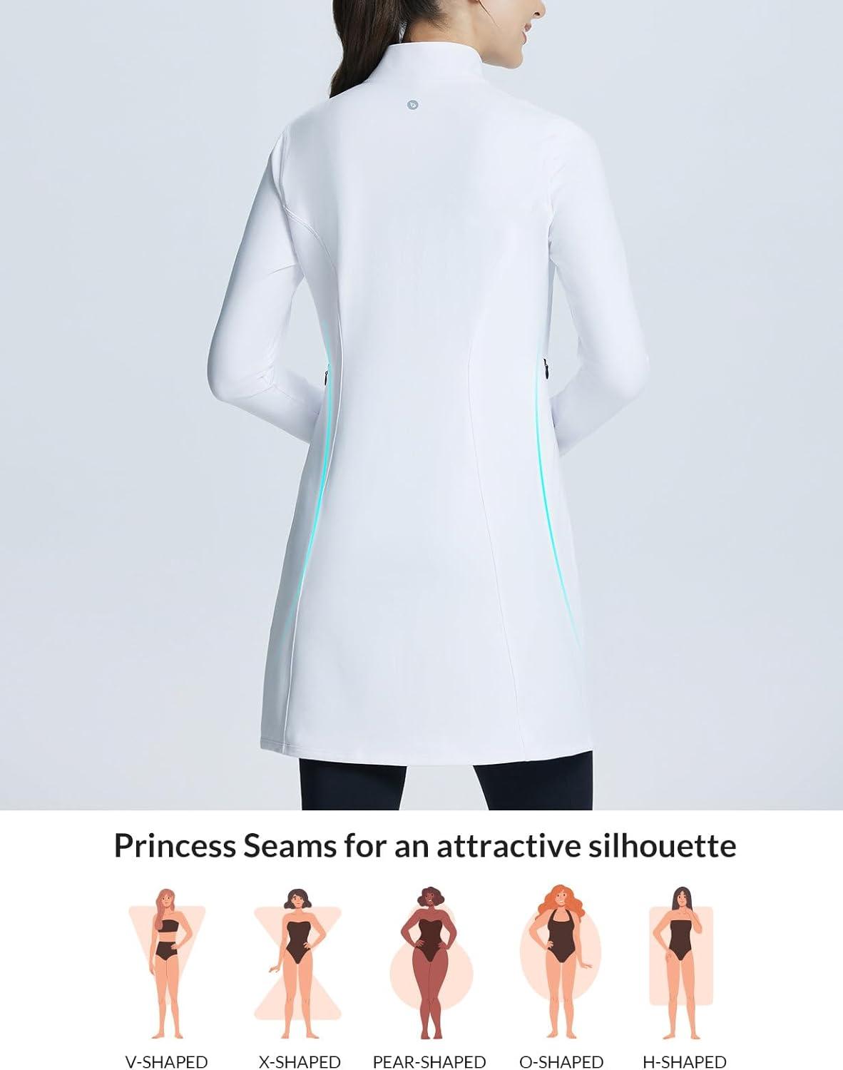 baleaf Women's Fleece Dress Sweatshirt Winter Dress Tunic Long Warm Quarter Zip Up Pullover Jackets with Pocket Outdoor(White)