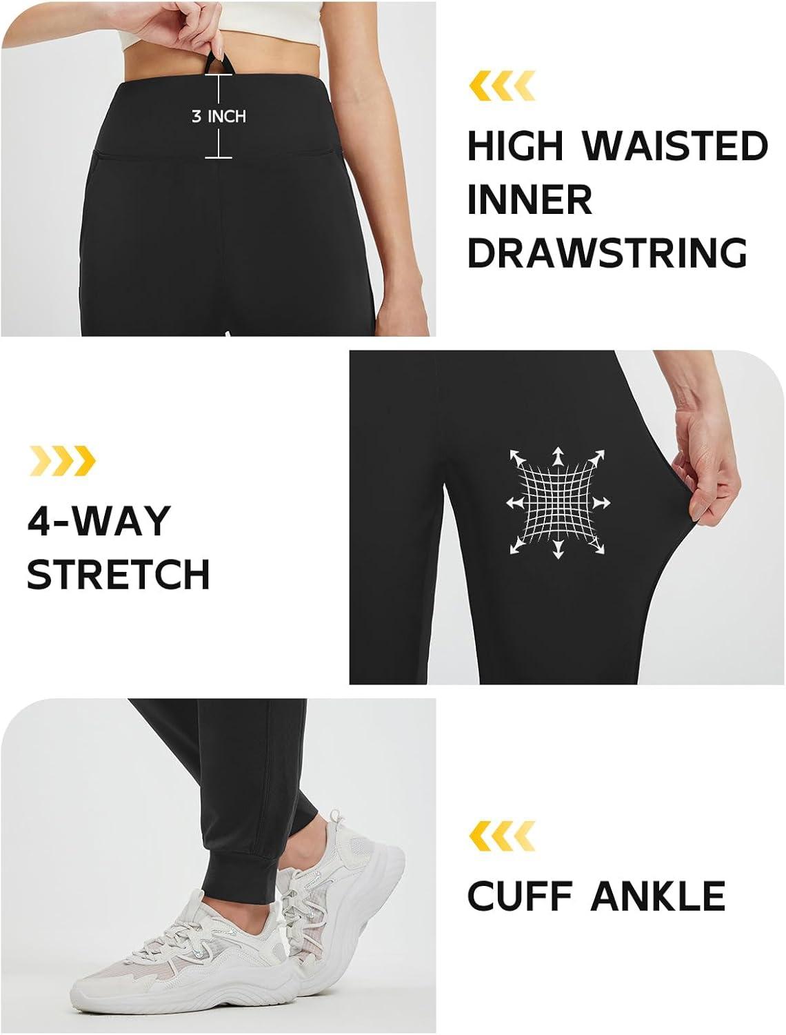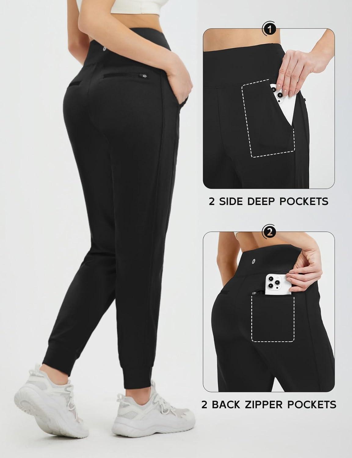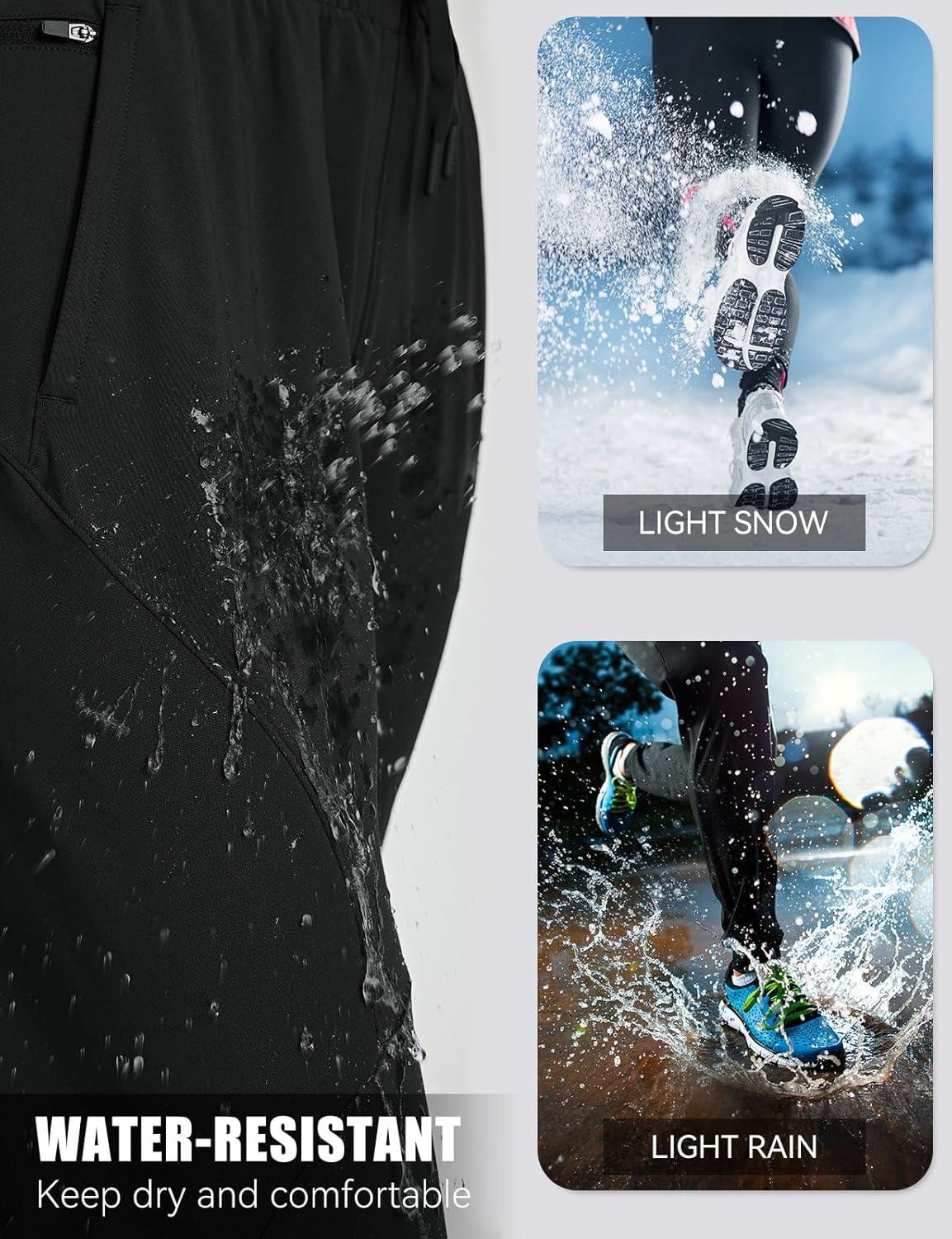 imagebaleaf Womens Fleece Lined Joggers Pants Winter Warm Water Resistant Running Hiking Thermal Sweatpants Zipper PocketsBlack