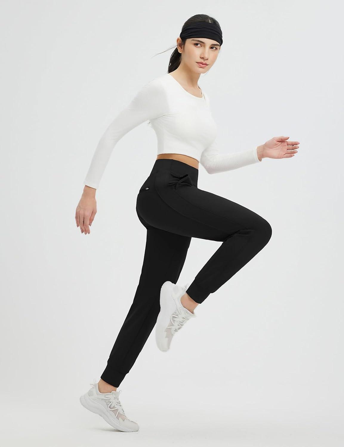 baleaf Women’s Fleece Lined Joggers Pants Winter Warm Water Resistant Running Hiking Thermal Sweatpants Zipper Pockets(Black)