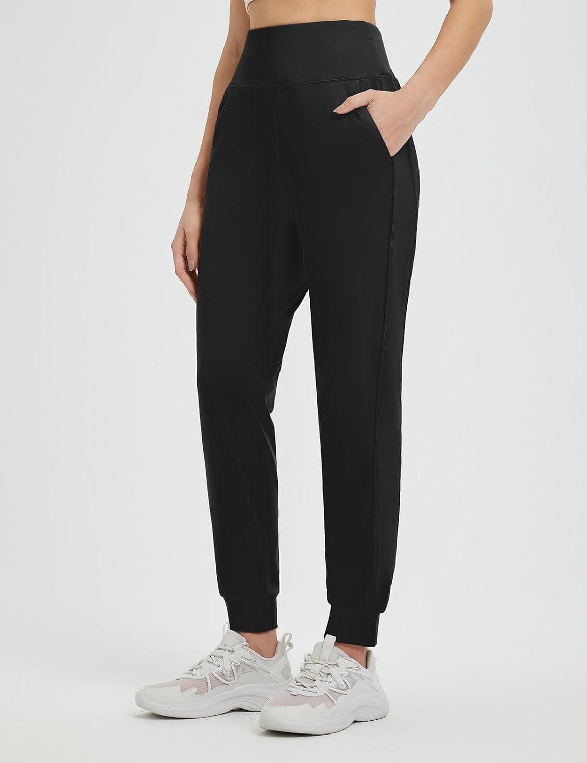 baleaf Women's Fleece Lined Joggers Pants Winter Warm Water Resistant Running Hiking Thermal Sweatpants Zipper Pockets(Black)