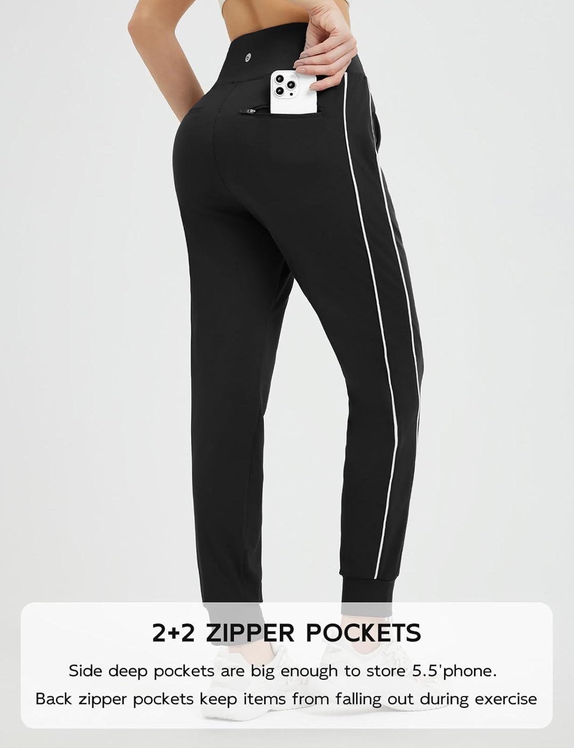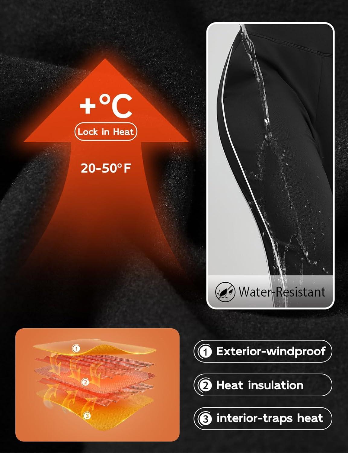 imagebaleaf Womens Fleece Lined Joggers Pants Winter Warm Water Resistant Running Hiking Thermal Sweatpants Zipper PocketsWhiteblack