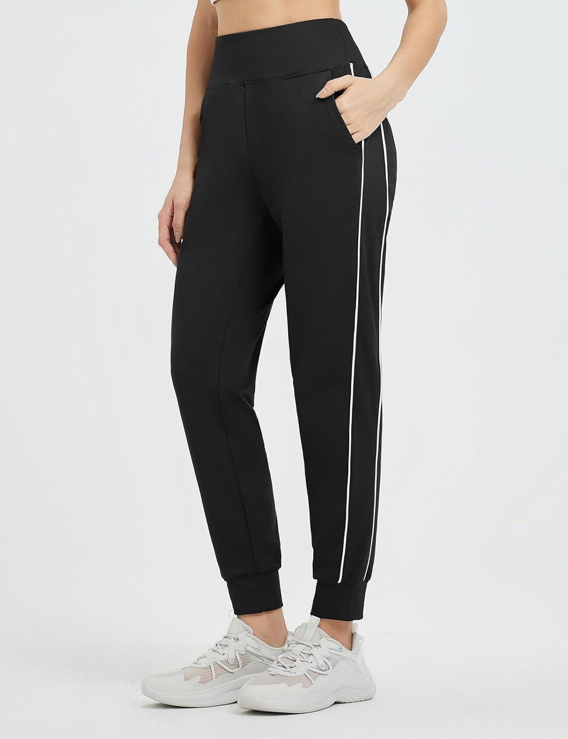 baleaf Women's Fleece Lined Joggers Pants Winter Warm Water Resistant Running Hiking Thermal Sweatpants Zipper Pockets(White+black)