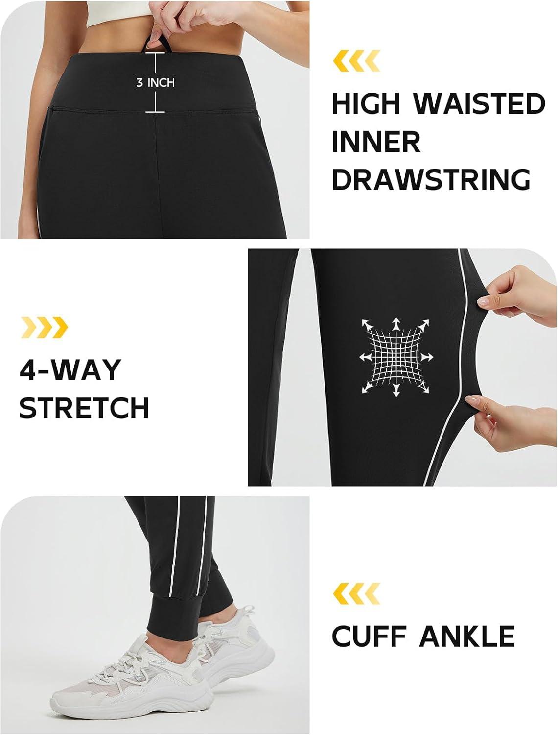 baleaf Womens Fleece Lined Pants Stretch Travel with 5 Pockets Business Casual Golf Dress Petite Thermal Winter Sweatpants(Black)