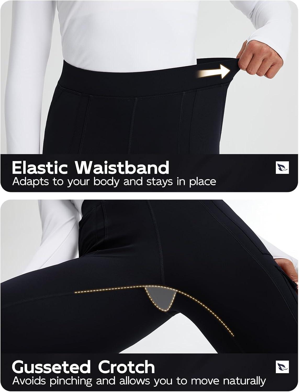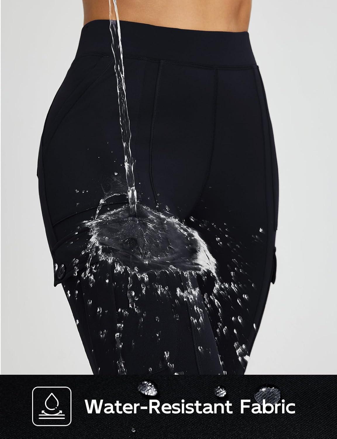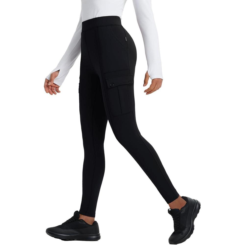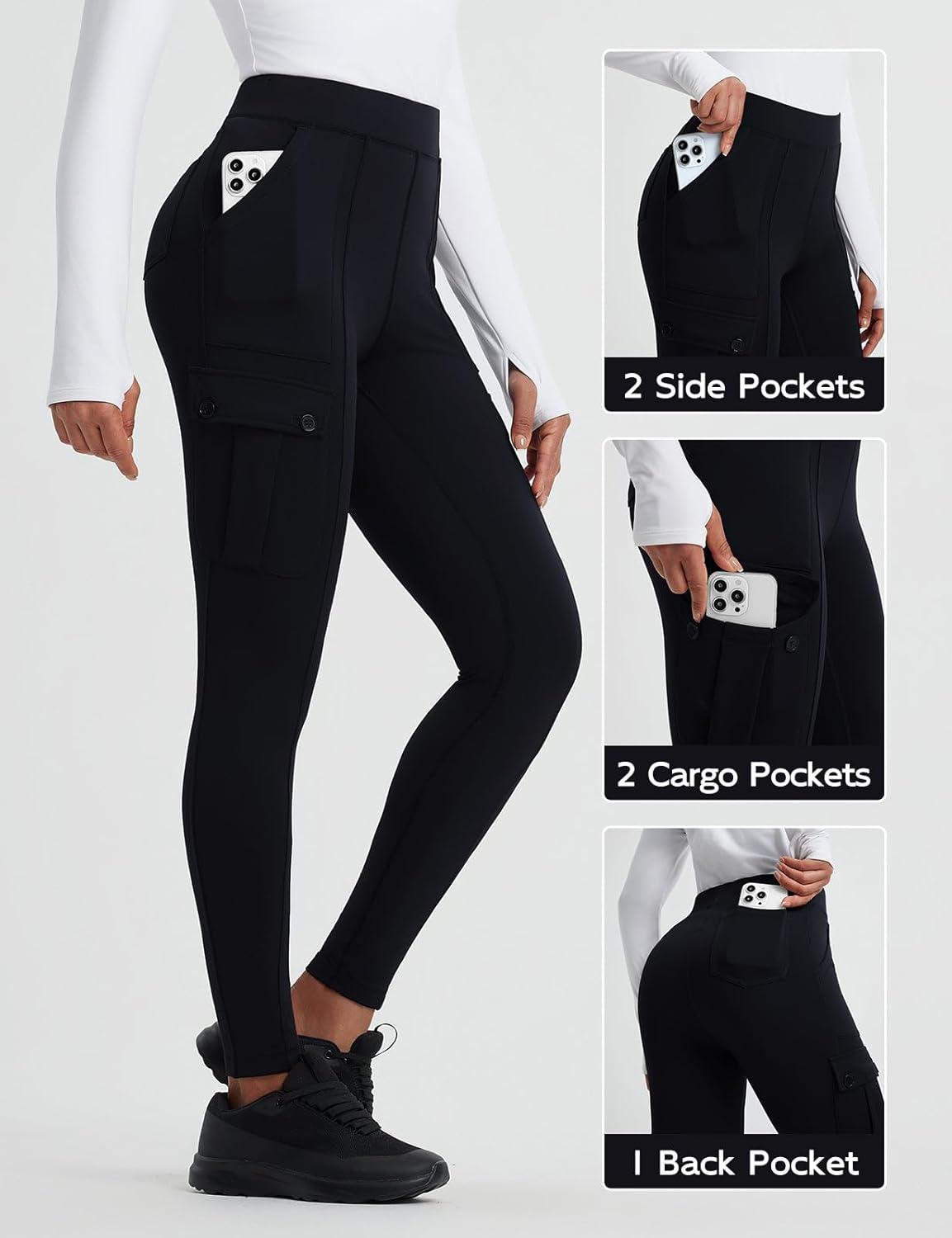imagebaleaf Womens Fleece Lined Leggings Thermal Hiking Pants Water Resistant Pockets Winter Warm Cargo Insulated TightsBlack