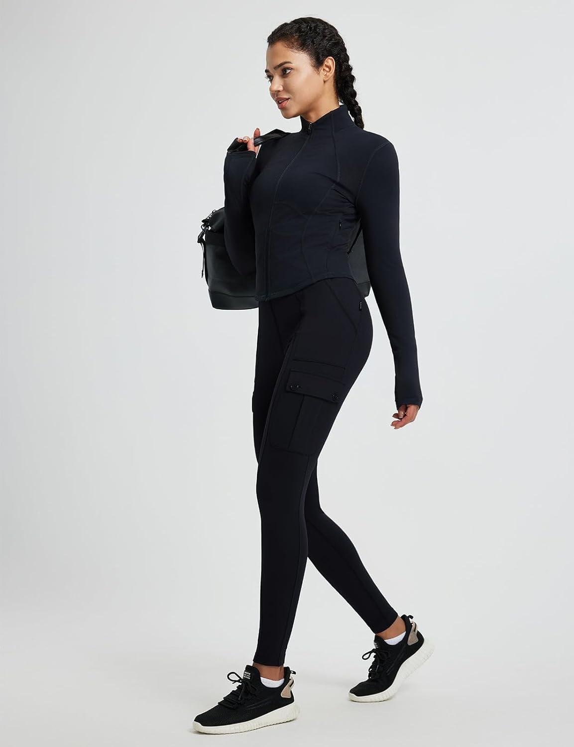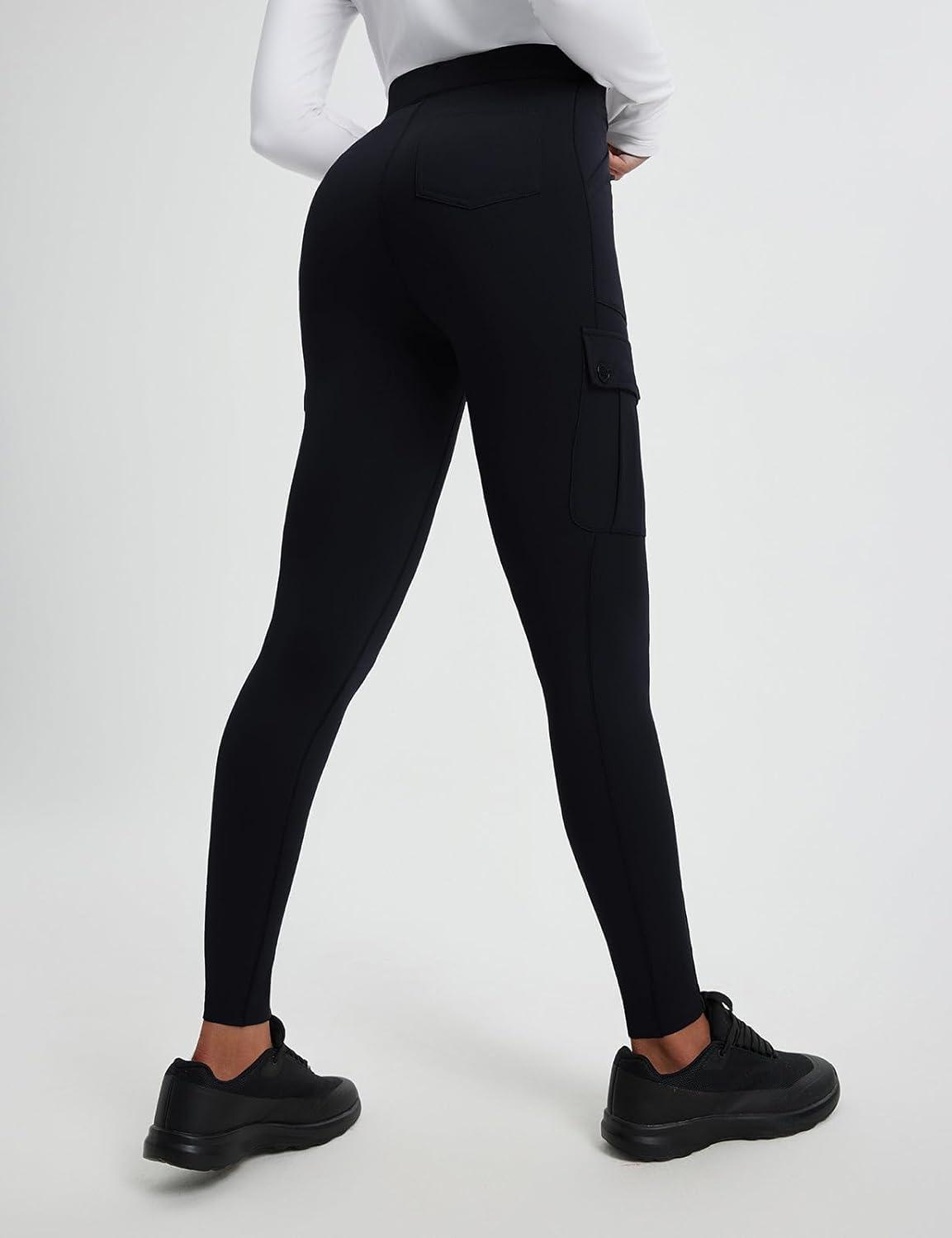 baleaf Women's Fleece Lined Leggings Thermal Hiking Pants Water Resistant Pockets Winter Warm Cargo Insulated Tights(Black)