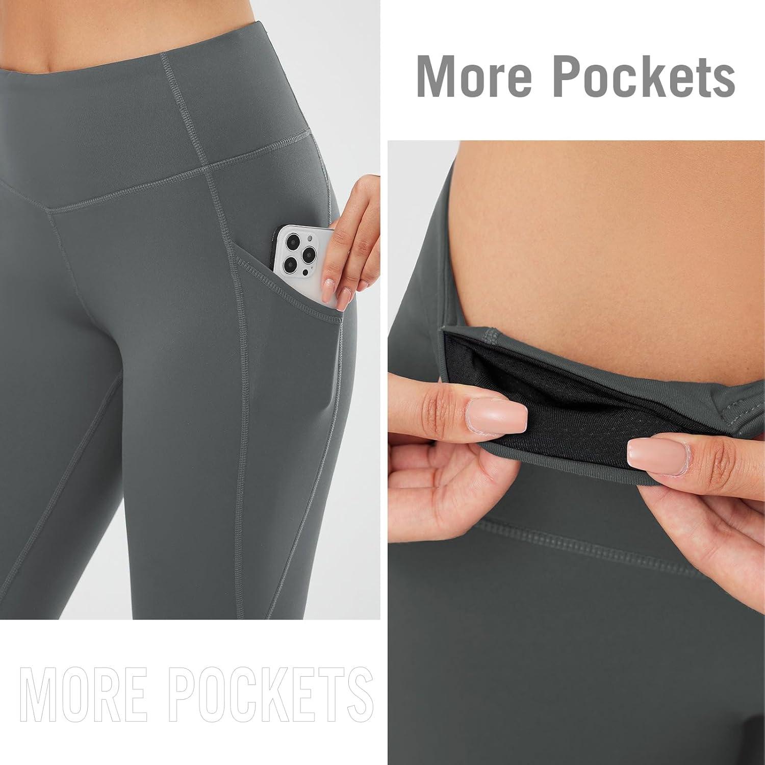 imagebaleaf Womens Fleece Lined Leggings Thermal Warm Winter Tights High Waisted Thick Yoga Pants Cold Weather with PocketsGray