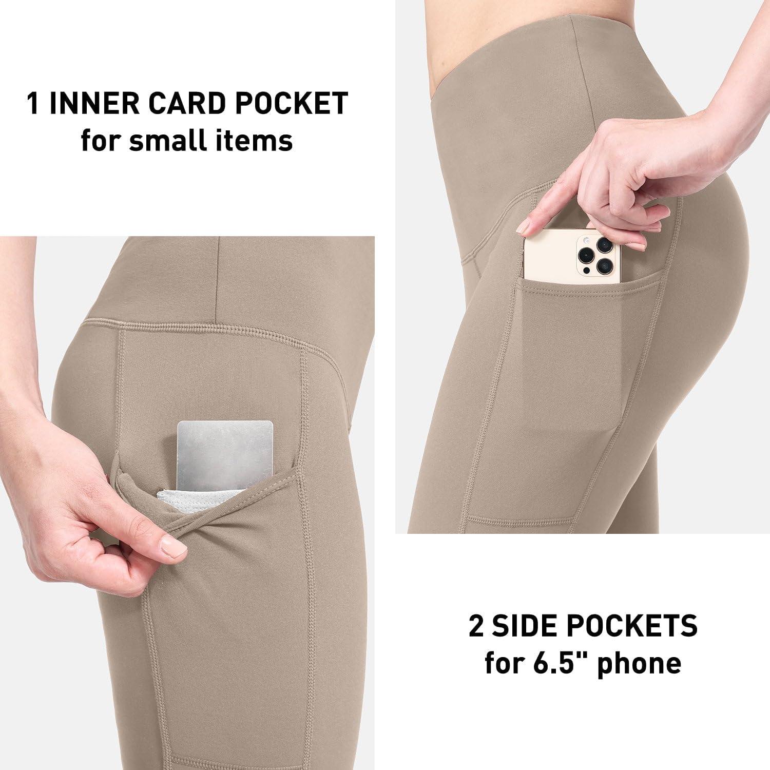 imagebaleaf Womens Fleece Lined Leggings Thermal Warm Winter Tights High Waisted Thick Yoga Pants Cold Weather with PocketsKhaki