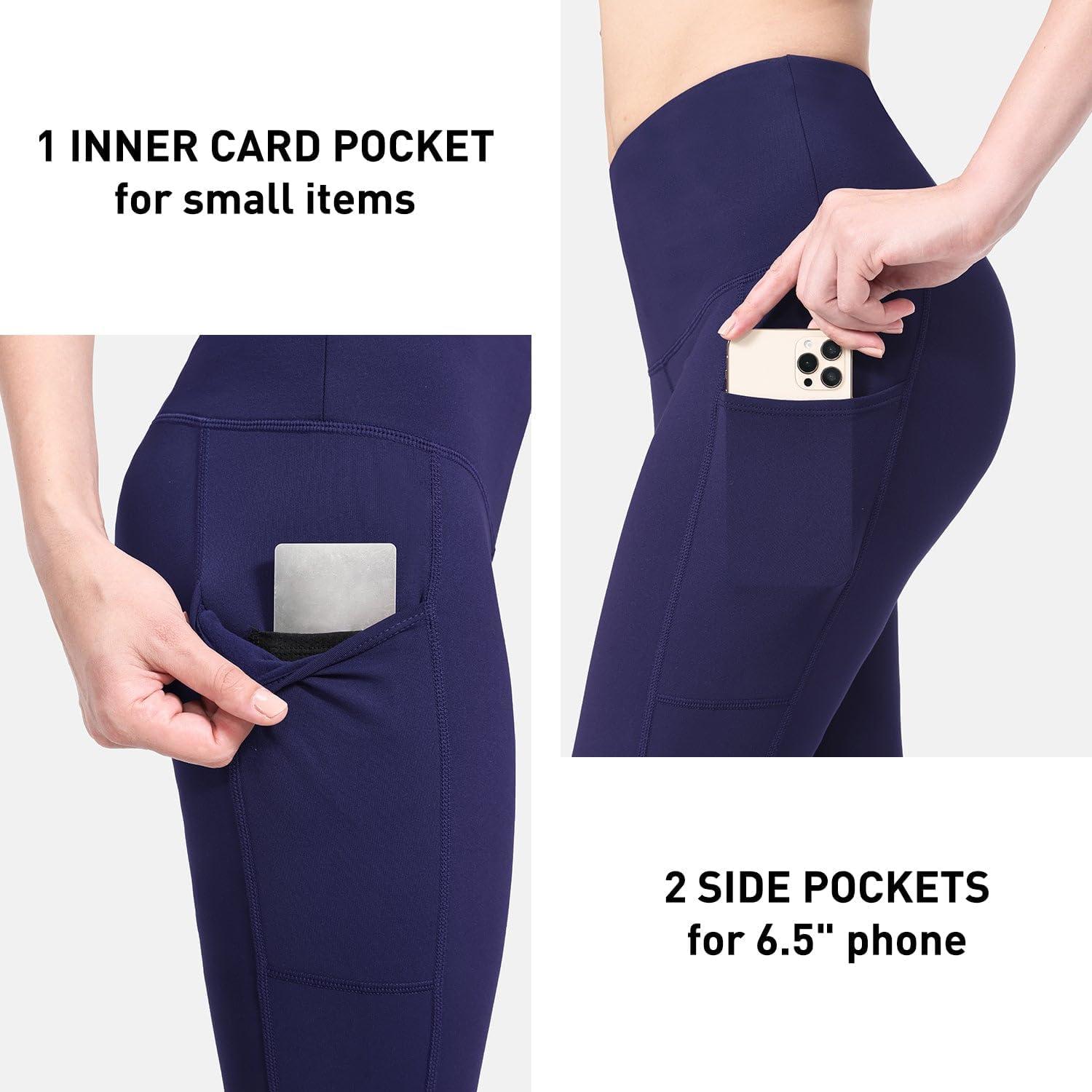 baleaf Women’s Fleece Lined Leggings Thermal Warm Winter Tights High Waisted Thick Yoga Pants Cold Weather with Pockets(Navy Blue)