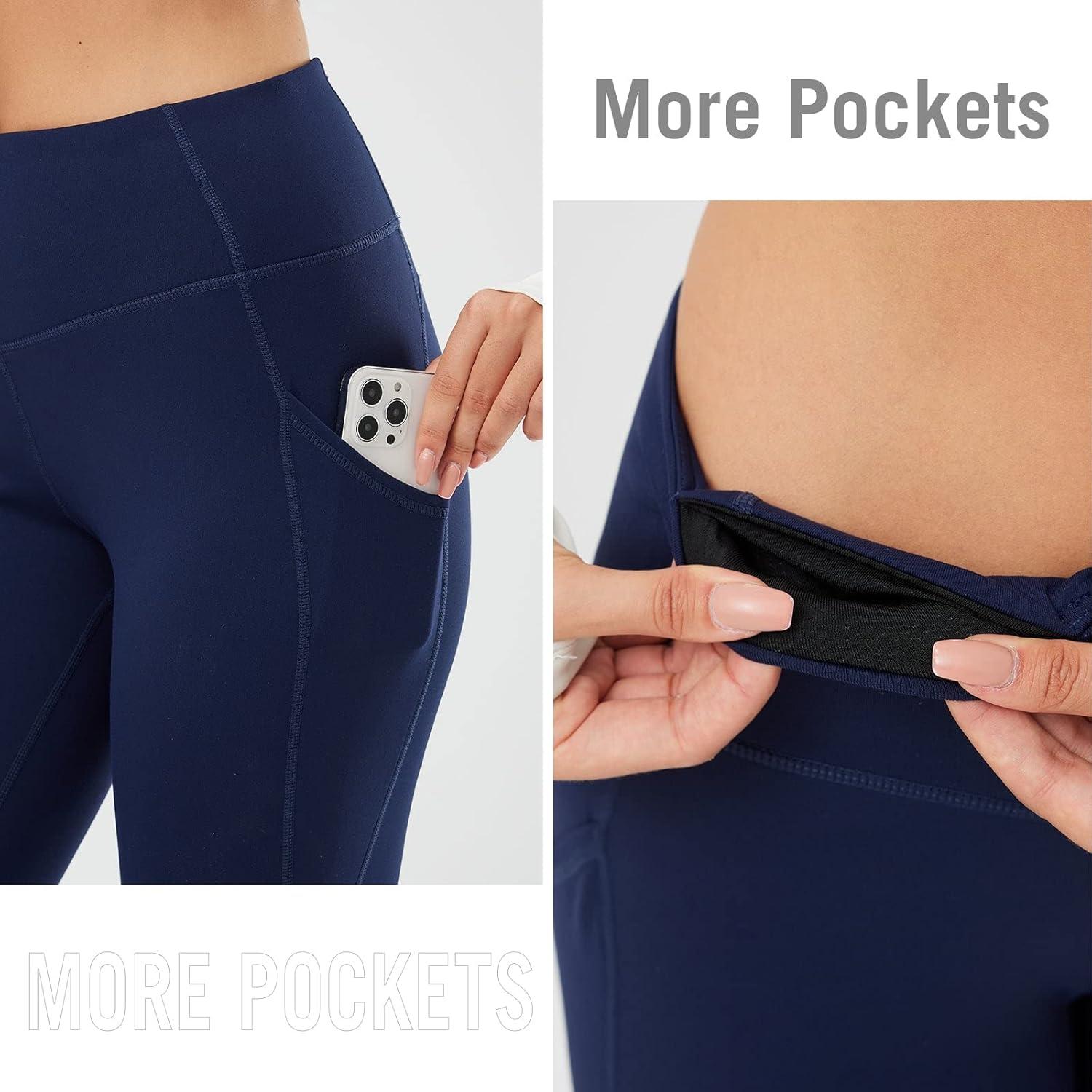 imagebaleaf Womens Fleece Lined Leggings Thermal Warm Winter Tights High Waisted Thick Yoga Pants Cold Weather with PocketsNavy Blue