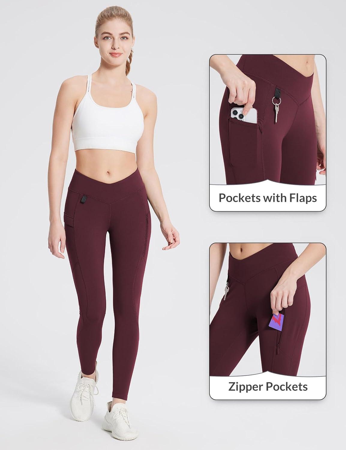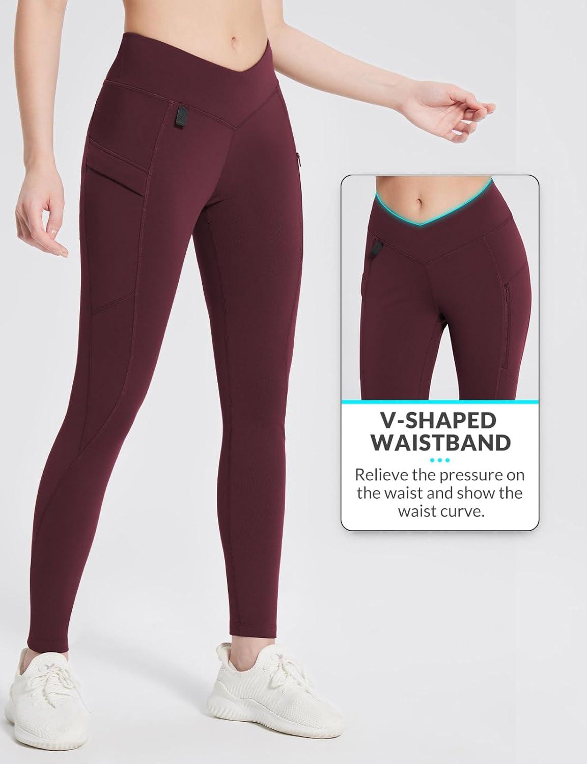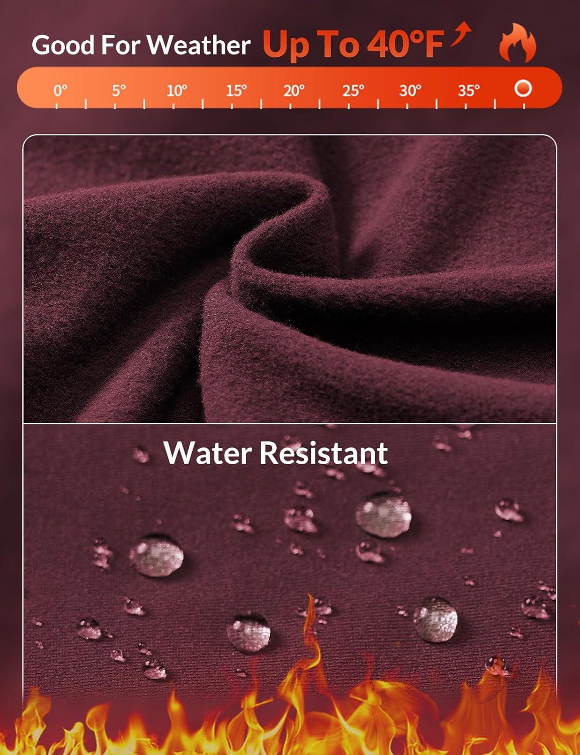 imagebaleaf Womens Fleece Lined Leggings Waterproof Hiking Petite Pants Zipper Pockets Winter Thermal Warm Cold WeatherWine Red