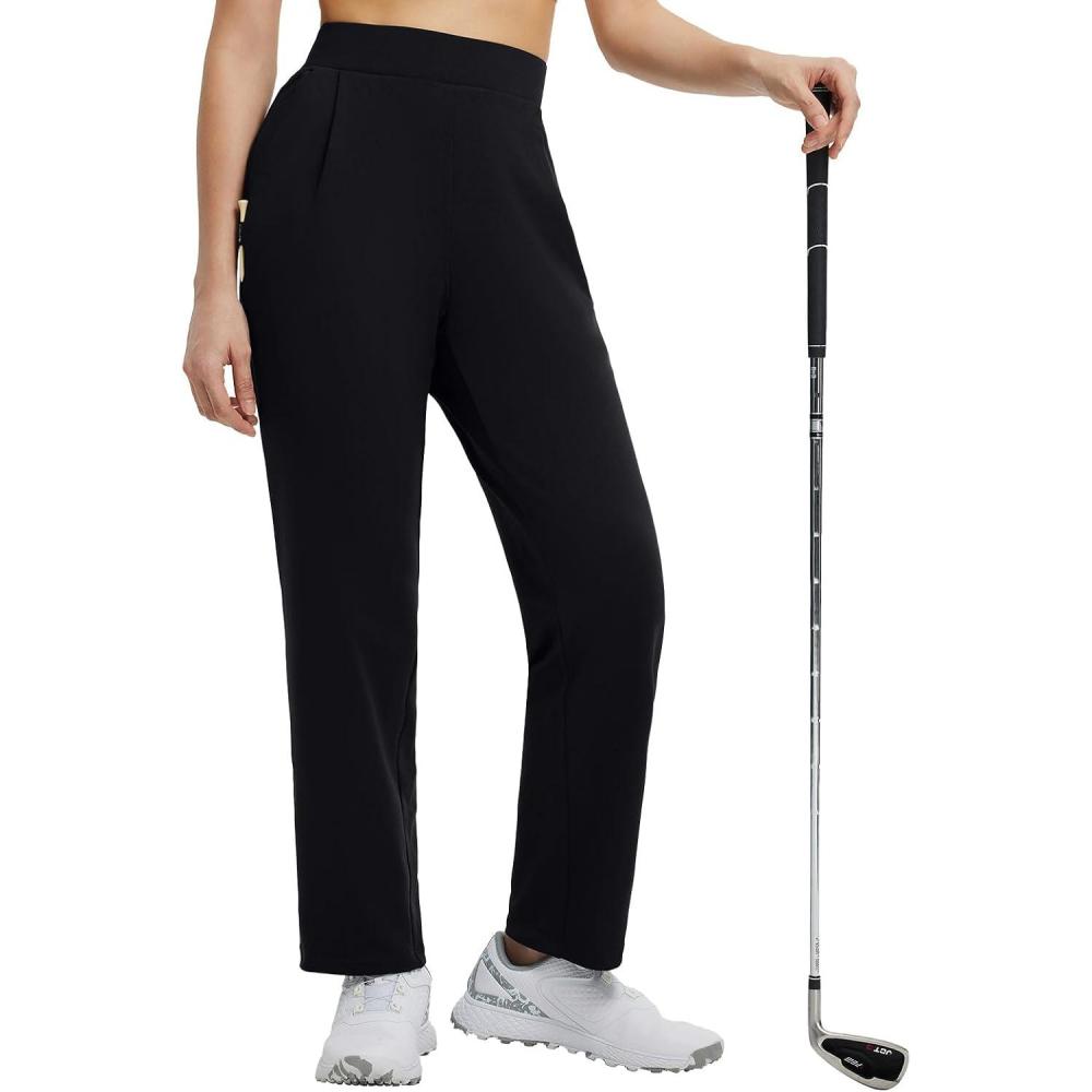 baleaf Women's Fleece Lined Pants Golf Winter Pockets High Waisted Thermal Cold Travel Work(Black)