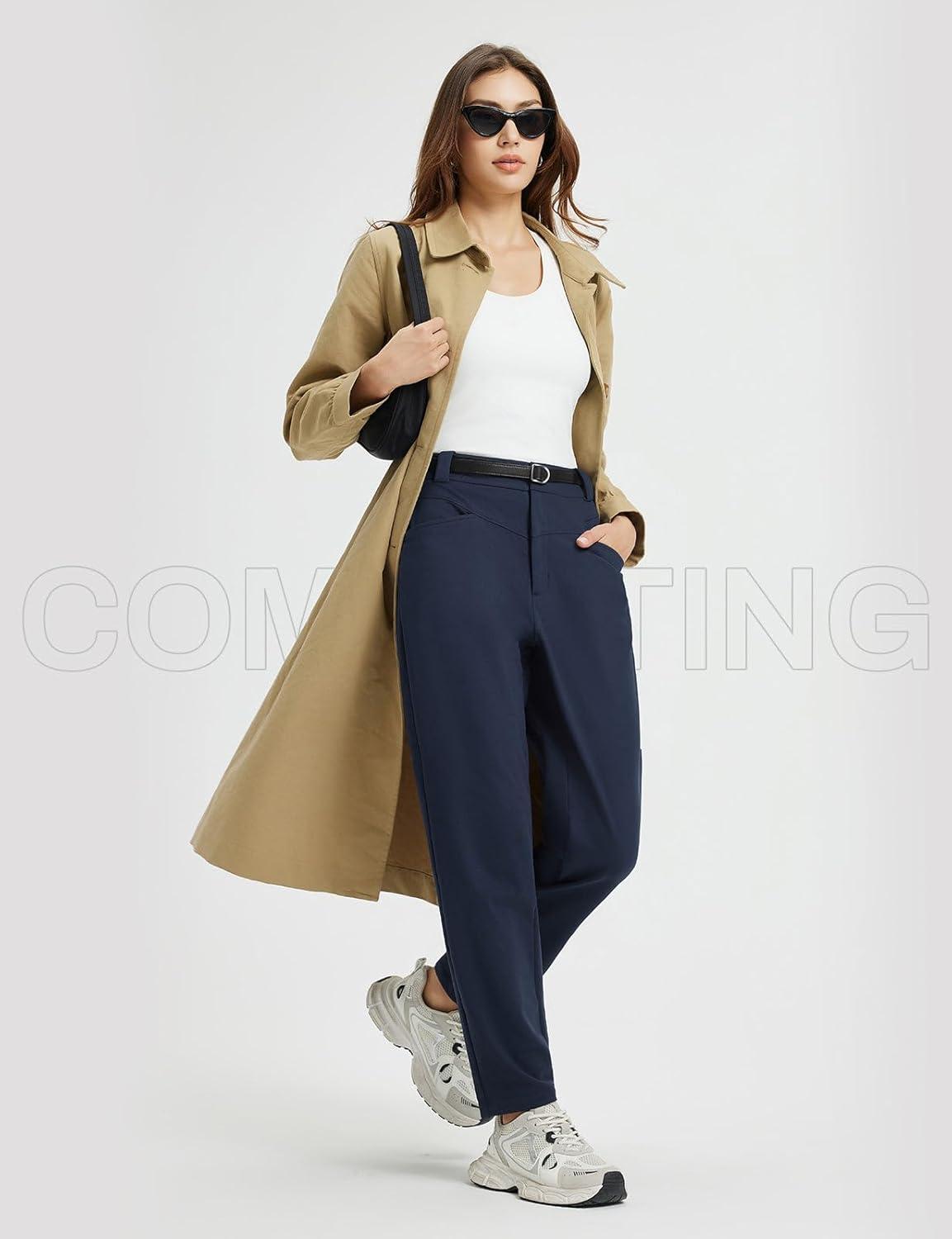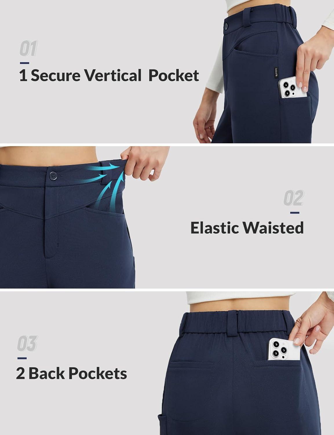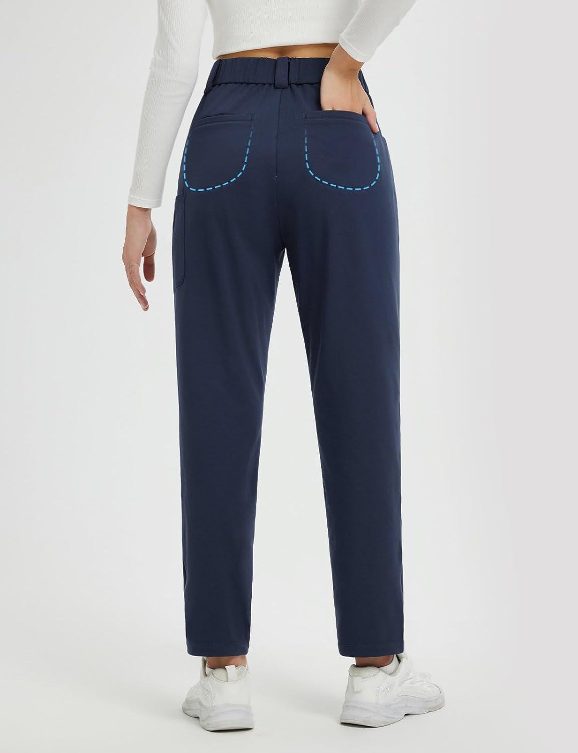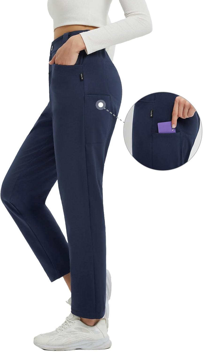 baleaf Womens Fleece Lined Pants Stretch Travel with 5 Pockets Business Casual Golf Dress Petite Thermal Winter Sweatpants(Navy Blue)
