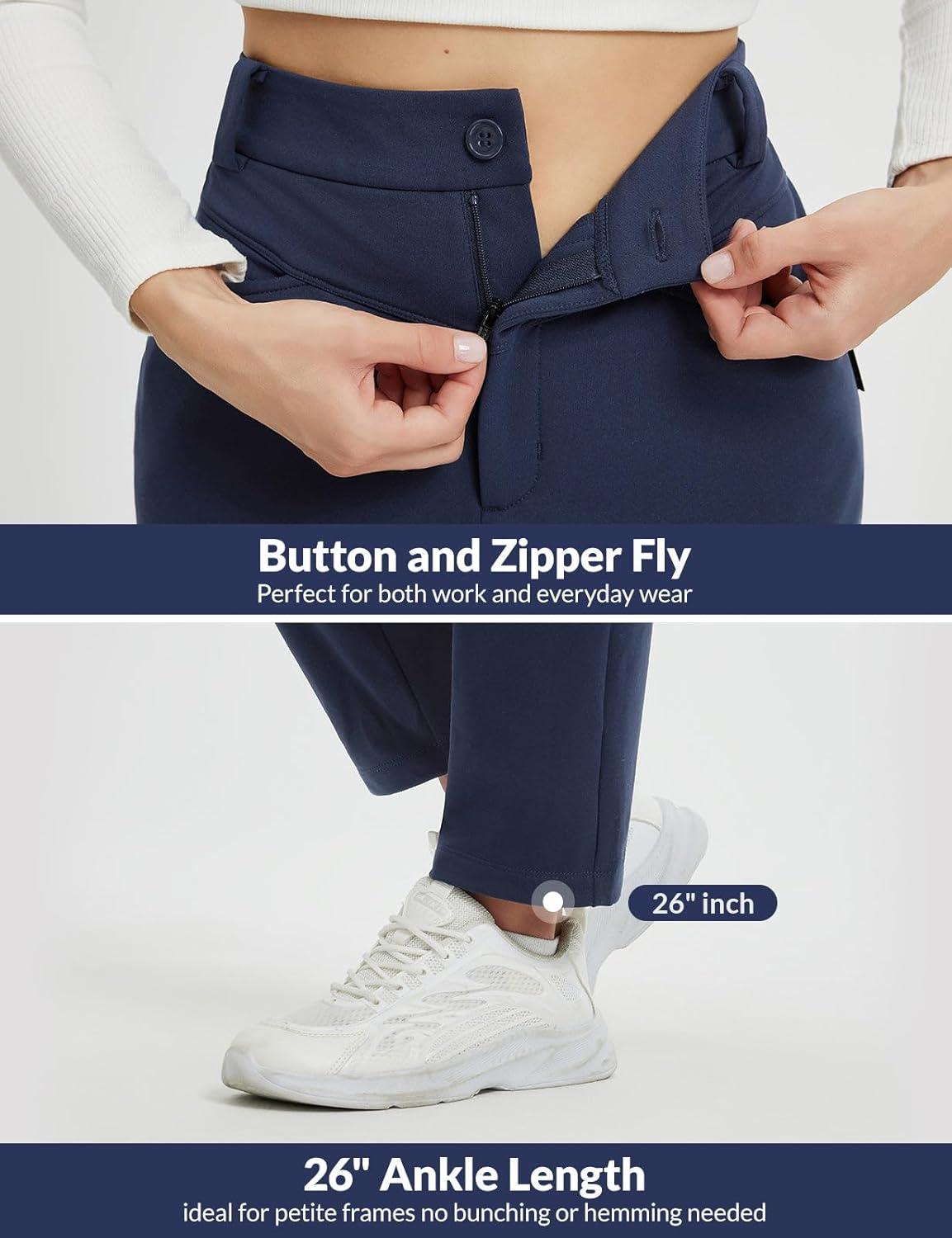 imagebaleaf Womens Fleece Lined Pants Stretch Travel with 5 Pockets Business Casual Golf Dress Petite Thermal Winter SweatpantsNavy Blue