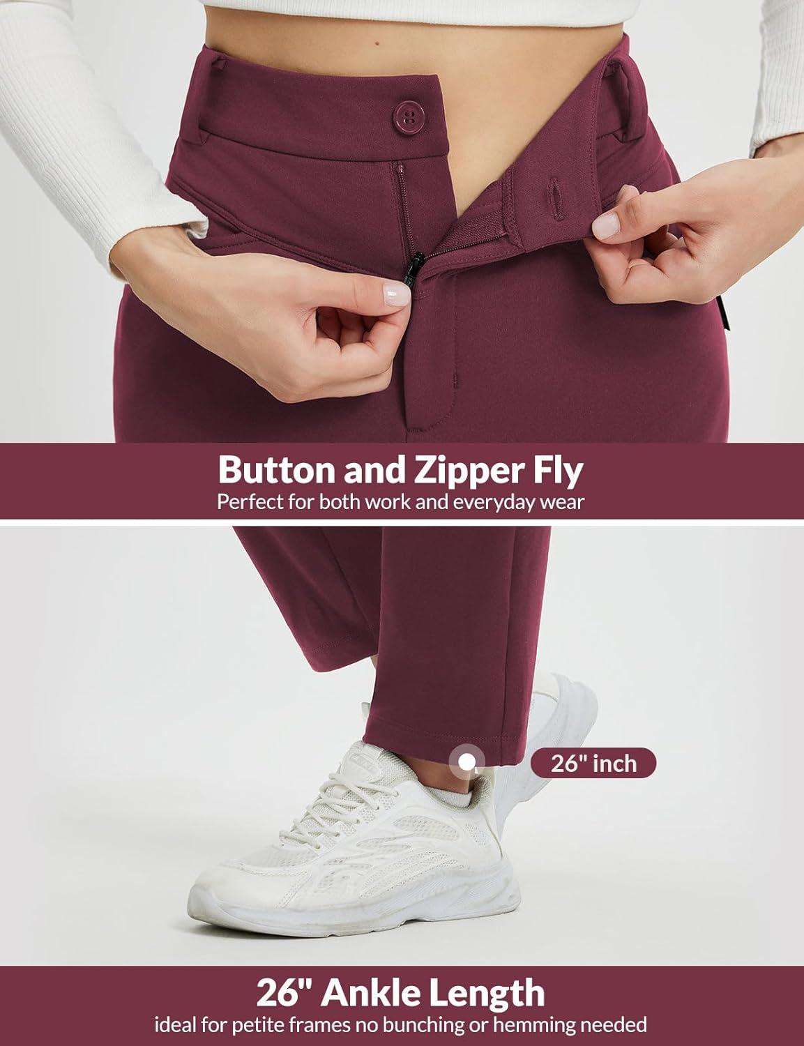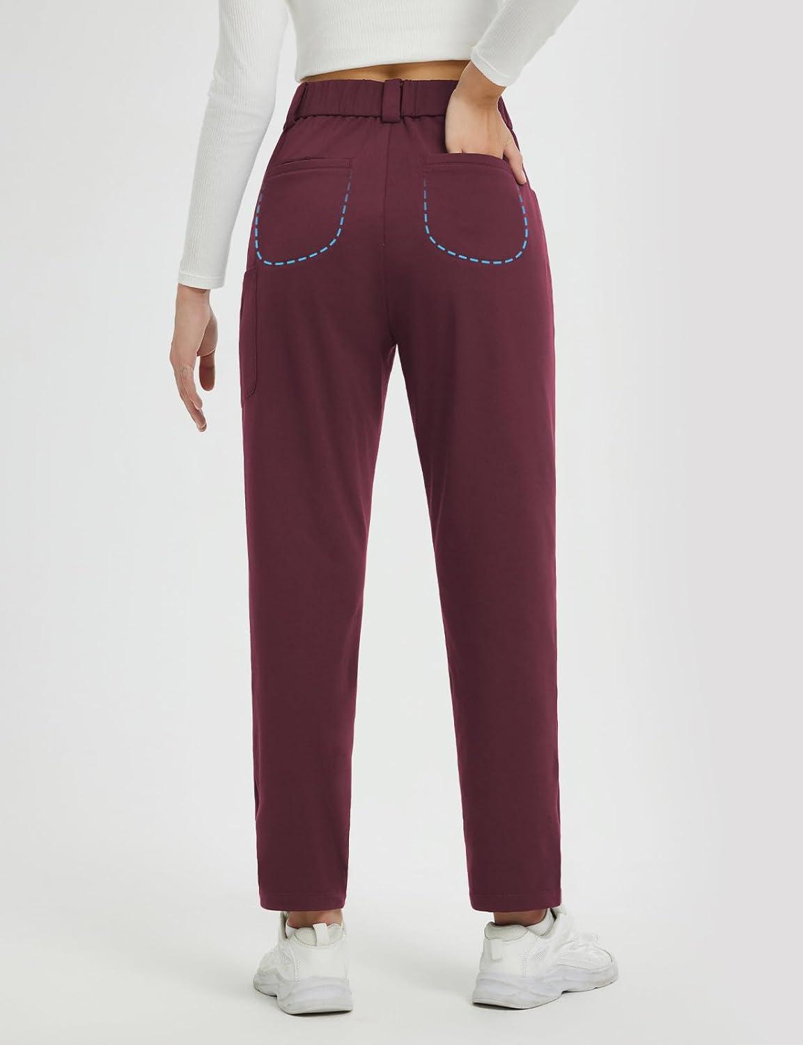 imagebaleaf Womens Fleece Lined Pants Stretch Travel with 5 Pockets Business Casual Golf Dress Petite Thermal Winter SweatpantsWine Red