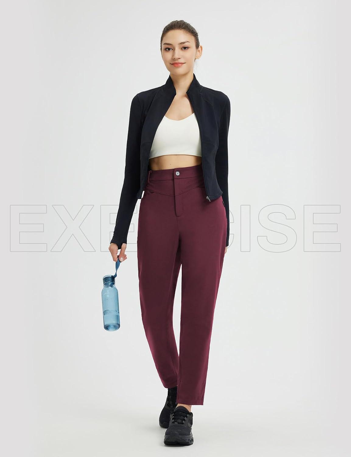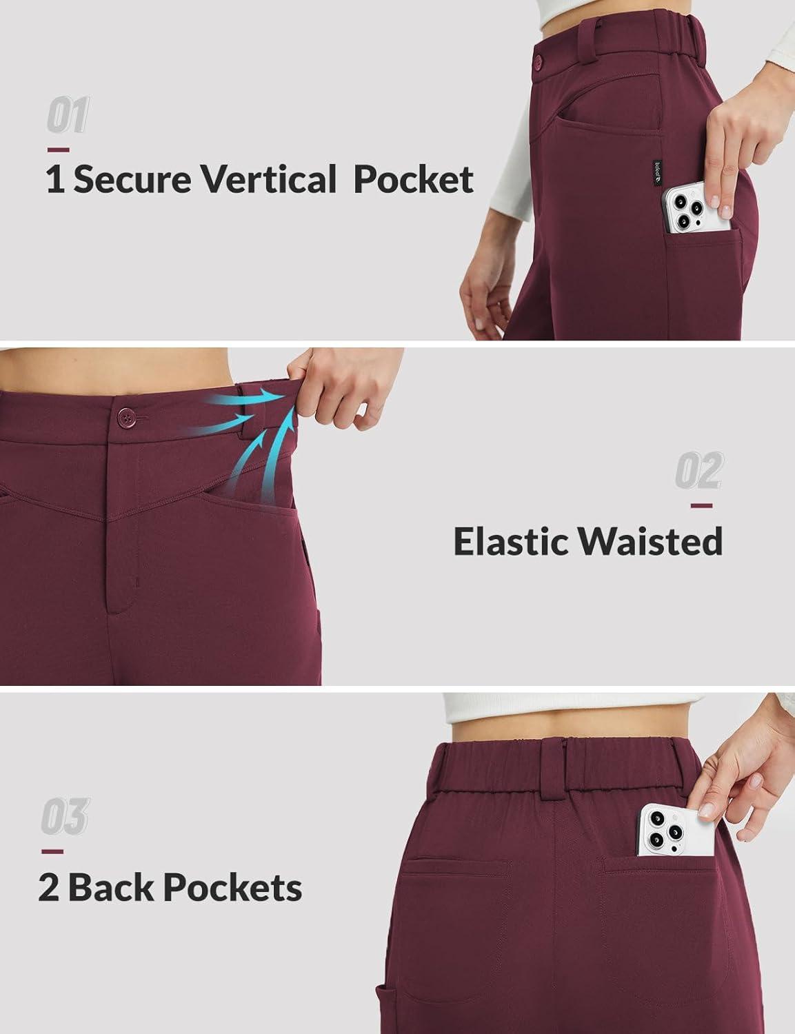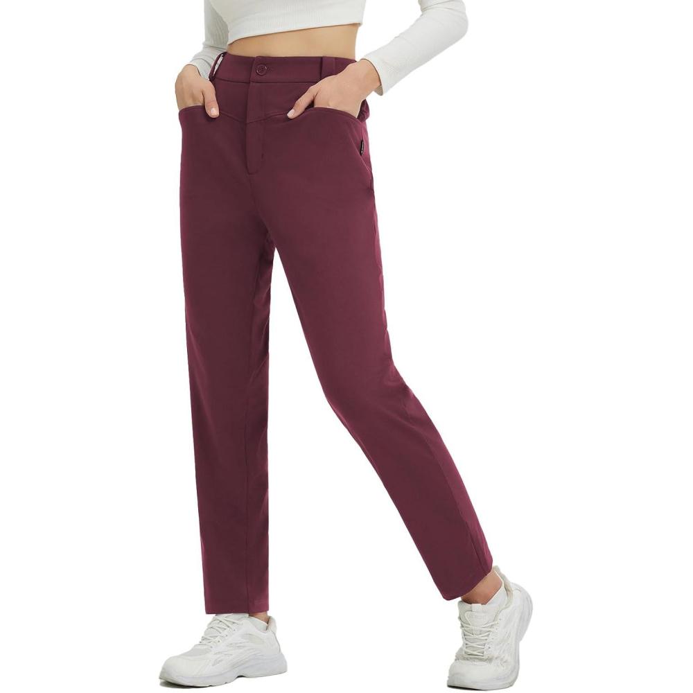 baleaf Womens Fleece Lined Pants Stretch Travel with 5 Pockets Business Casual Golf Dress Petite Thermal Winter Sweatpants(Wine Red)