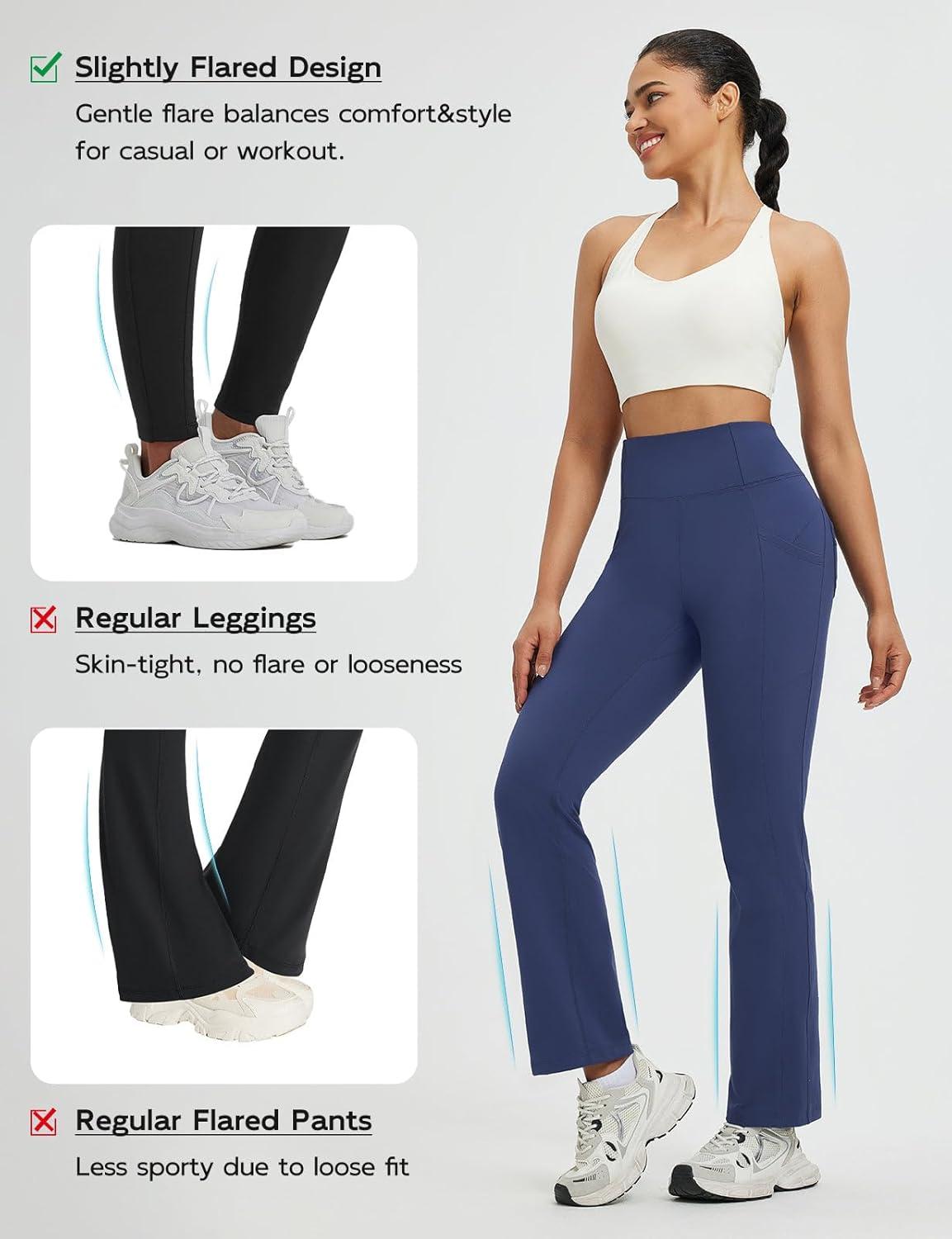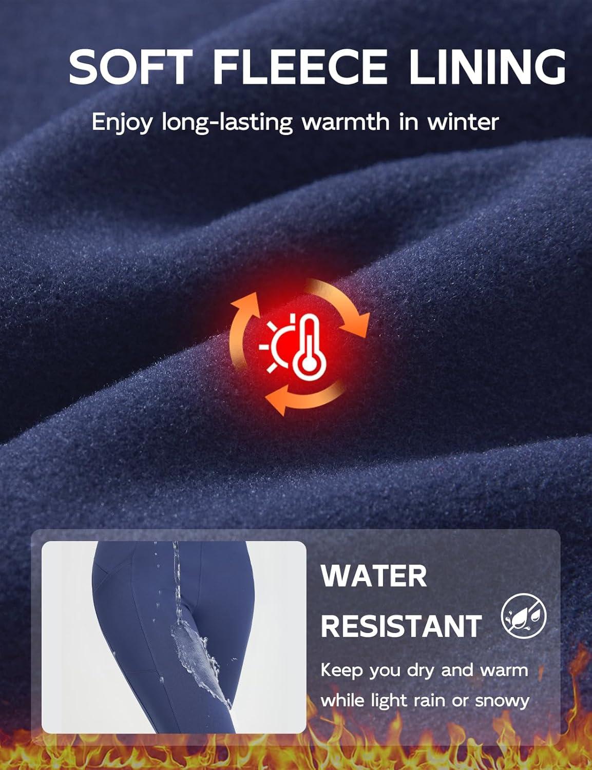baleaf Women’s Fleece Lined Pants Thermal Leggings Warm Winter with Pockets Water Resistant Bootcut Flare Track Pants(Navy Blue)