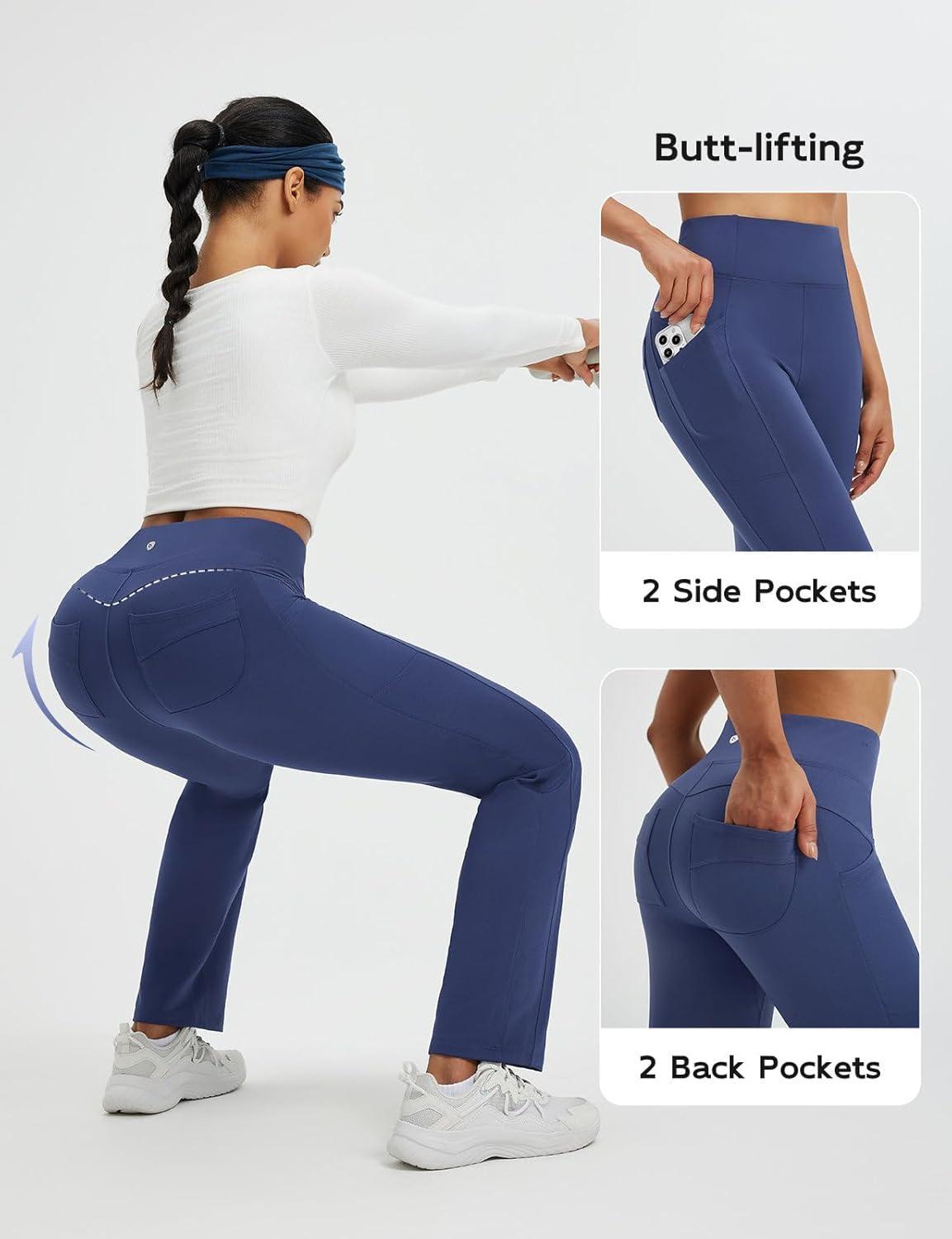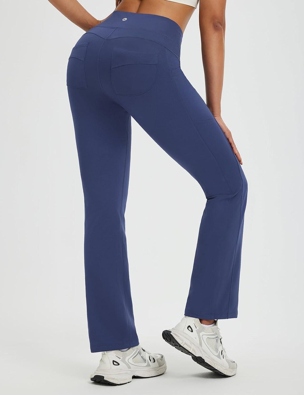 baleaf Women's Fleece Lined Pants Thermal Leggings Warm Winter with Pockets Water Resistant Bootcut Flare Track Pants(Navy Blue)