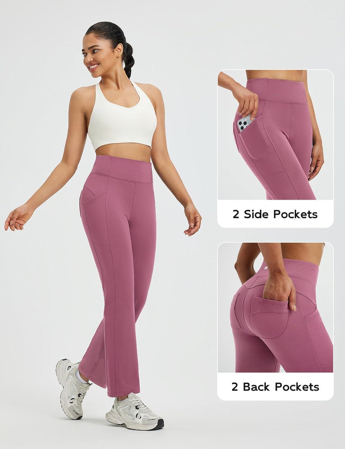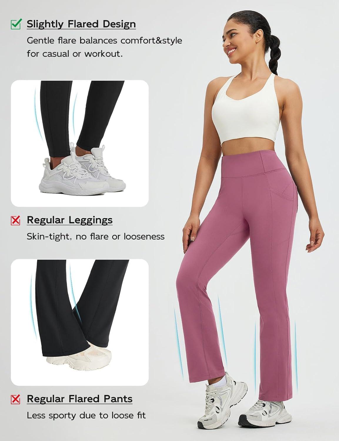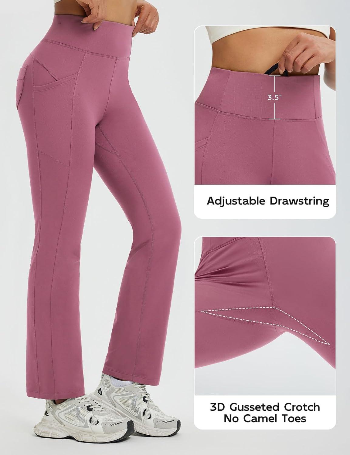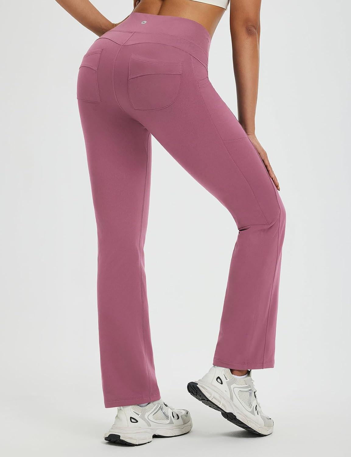baleaf Women’s Fleece Lined Pants Thermal Leggings Warm Winter with Pockets Water Resistant Bootcut Flare Track Pants(Rose Red)