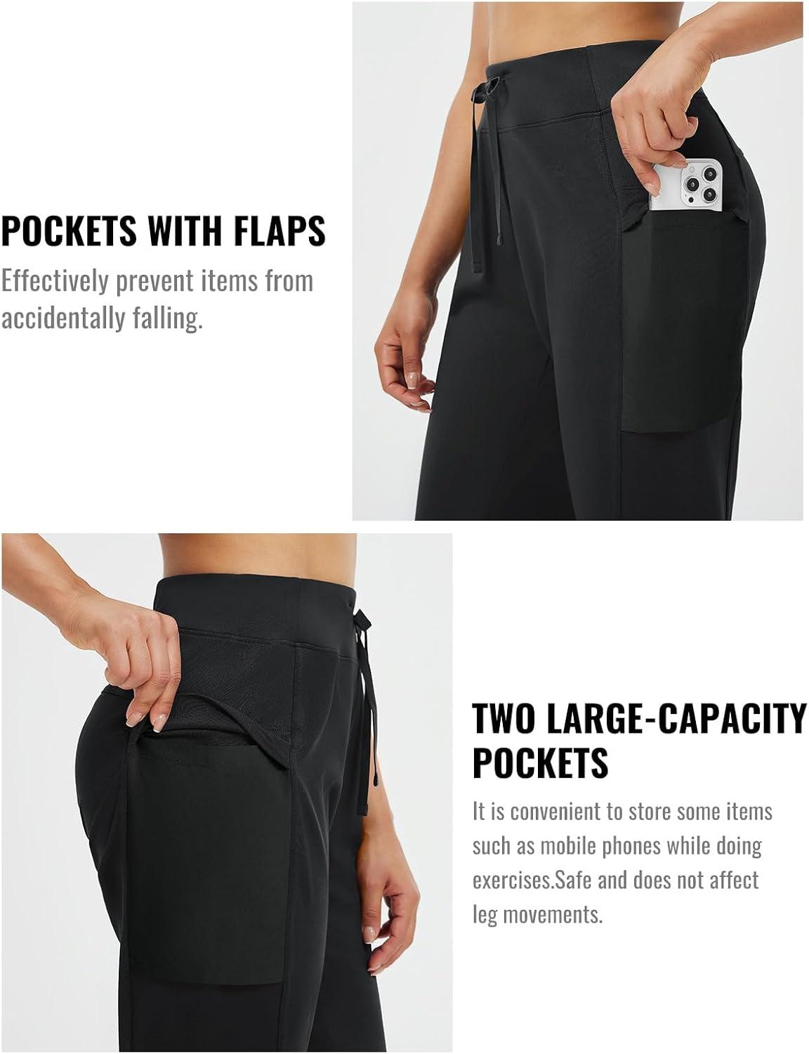 baleaf Women’s Fleece Lined Pants Thermal Water-Resistant Winter Joggers Warm Running Athletic Sweatpants with Pockets(Black)