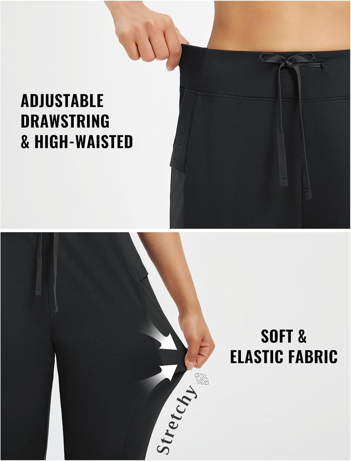 imagebaleaf Womens Fleece Lined Pants Thermal WaterResistant Winter Joggers Warm Running Athletic Sweatpants with PocketsBlack