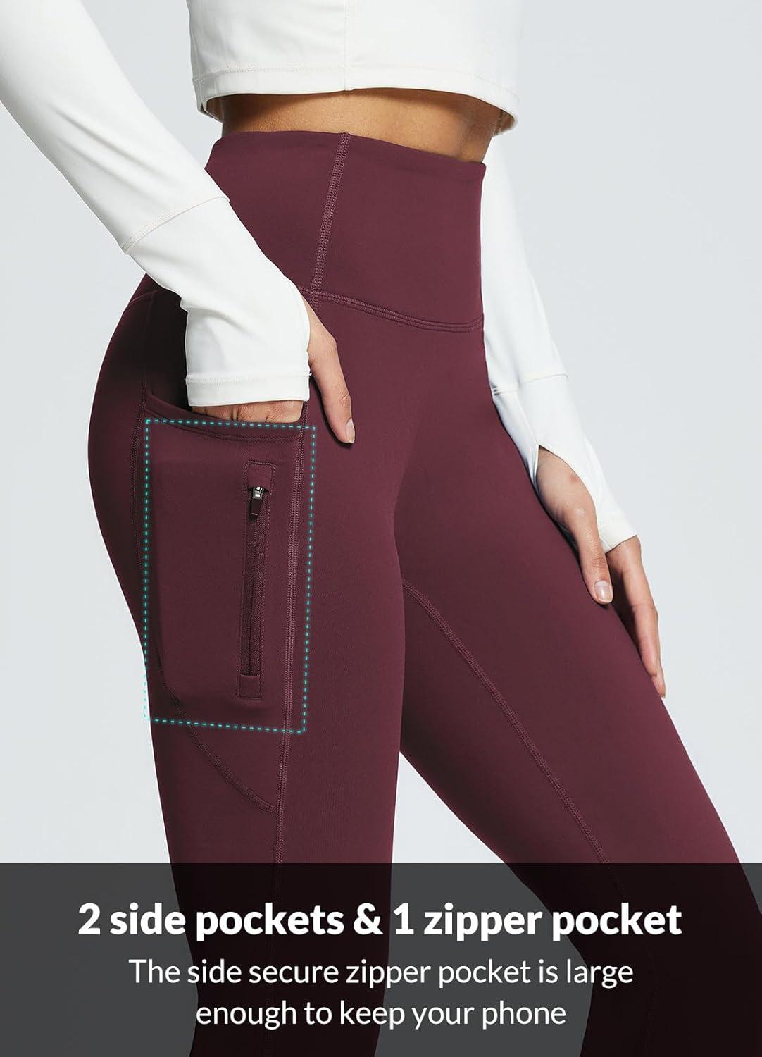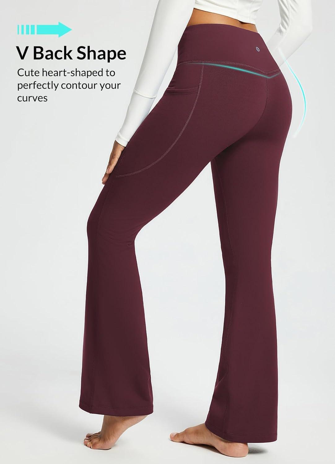 baleaf Women's Fleece Lined Pants Water Resistant Winter Thermal Warm Flare Leggings Bell Bottom Yoga Pants with Pockets(Wine Red)