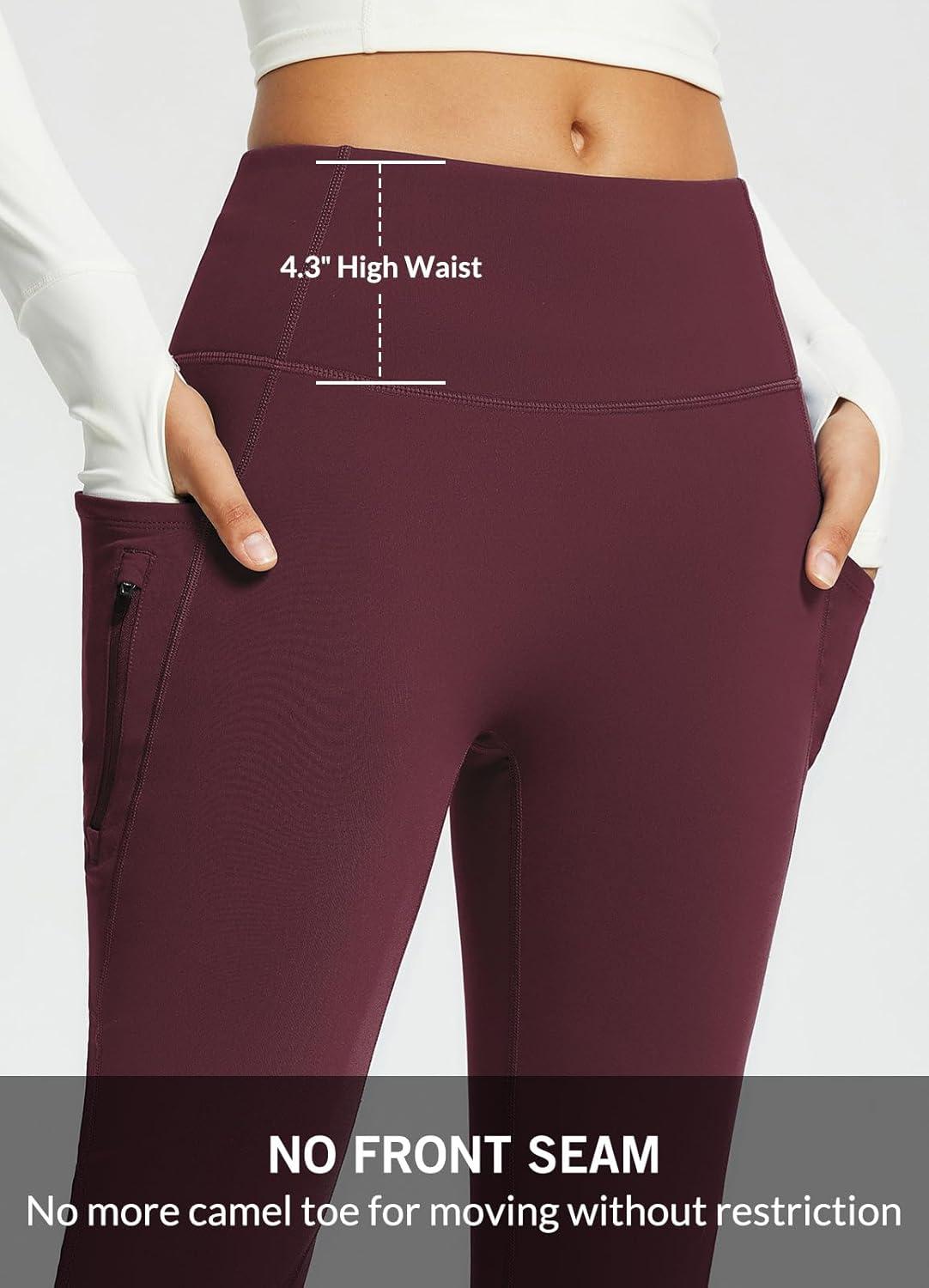 baleaf Women’s Fleece Lined Pants Water Resistant Winter Thermal Warm Flare Leggings Bell Bottom Yoga Pants with Pockets(Wine Red)