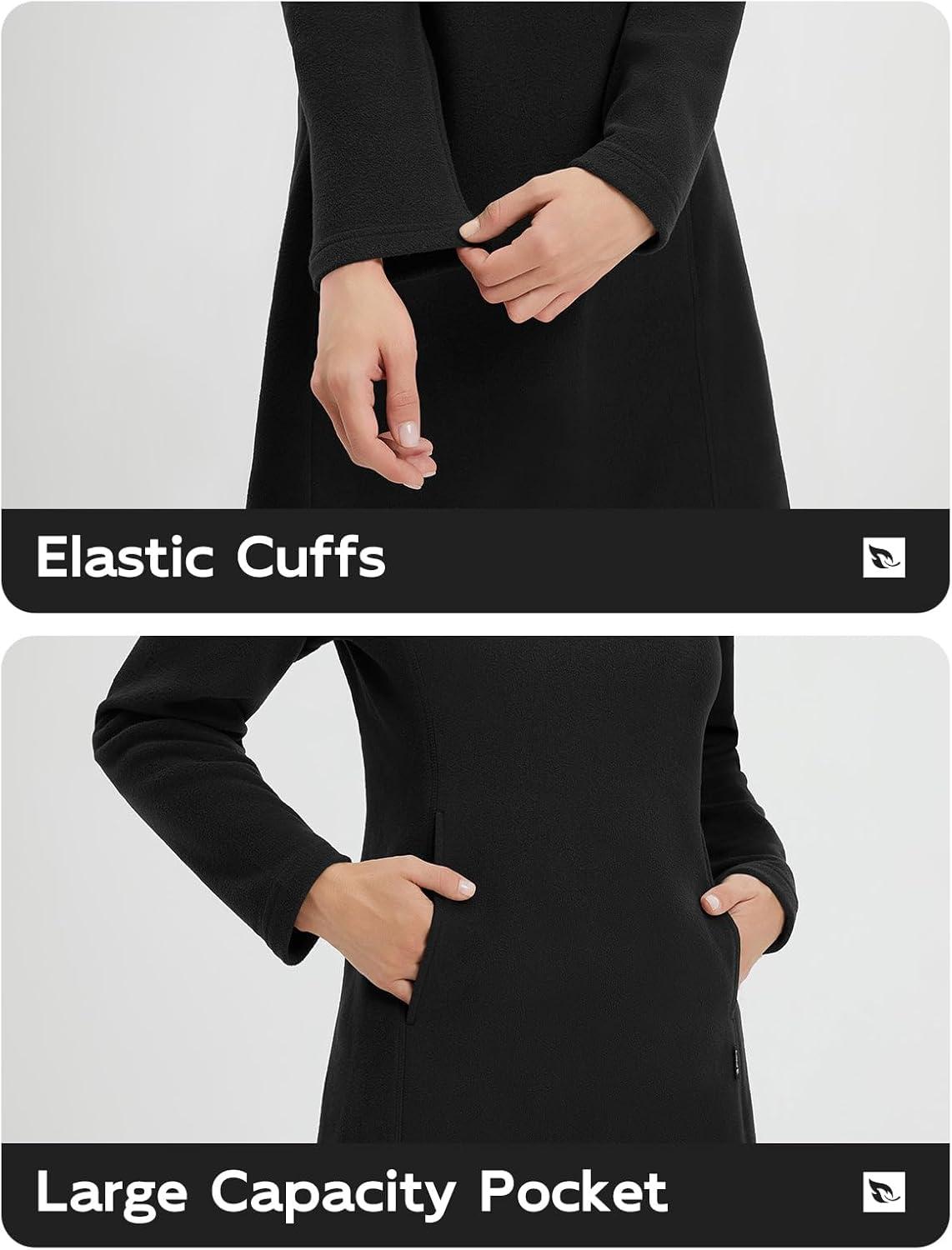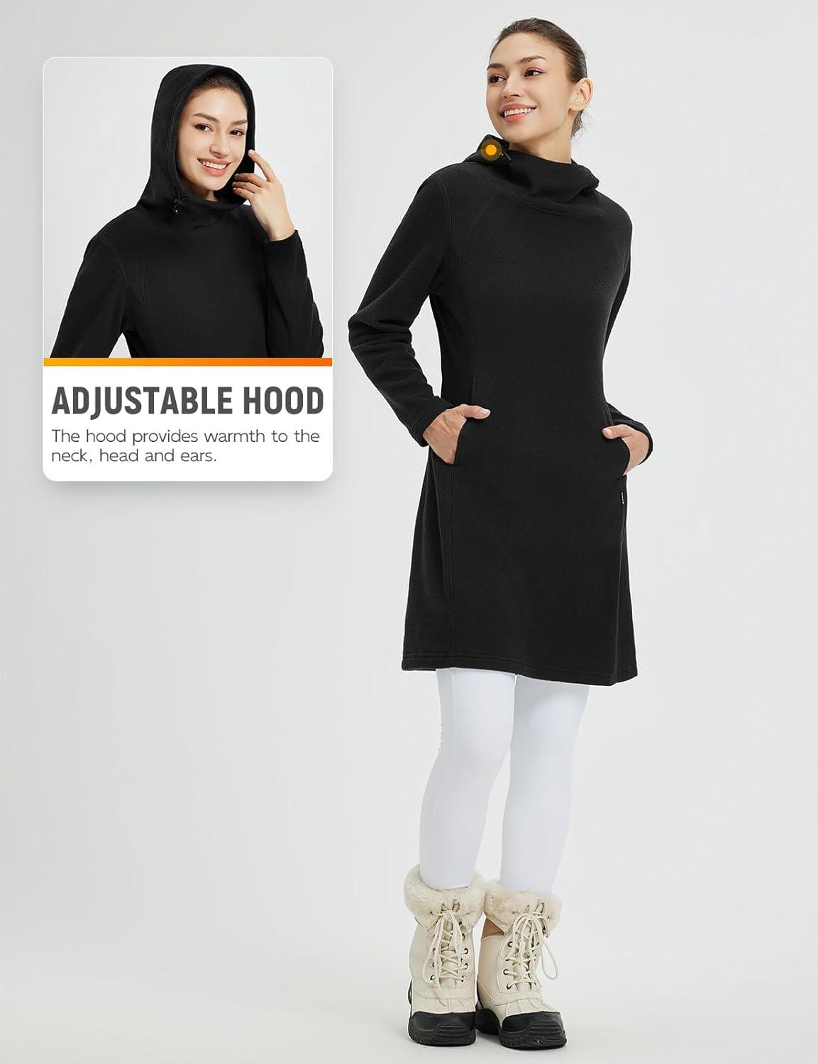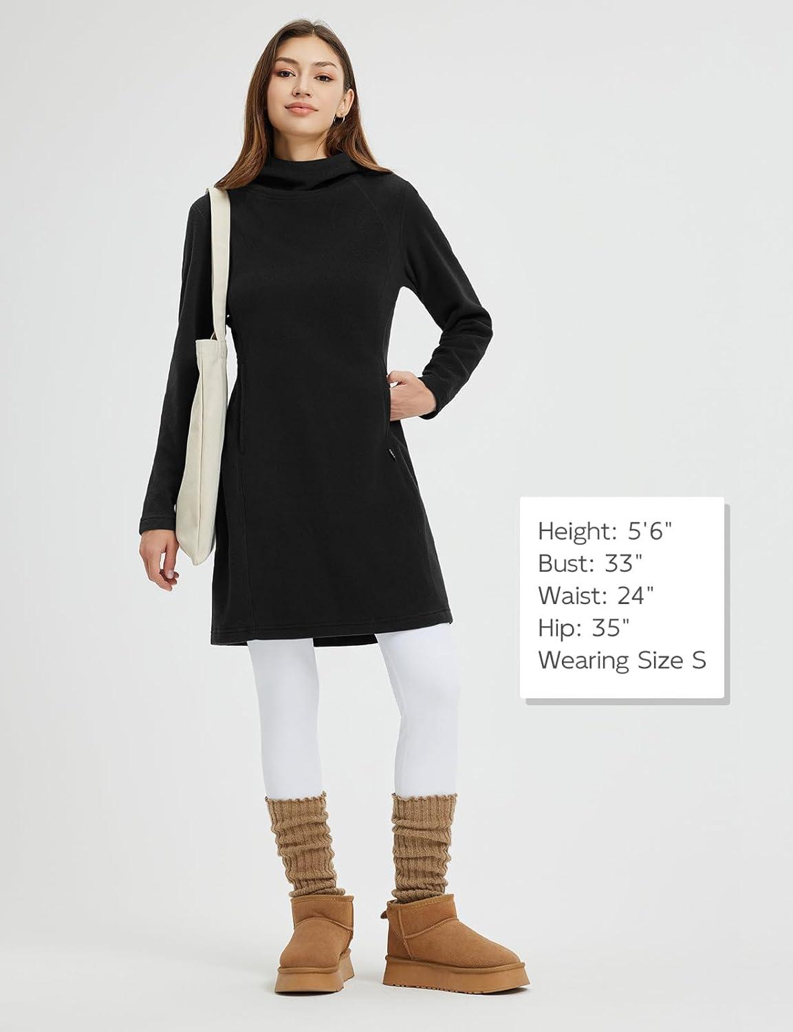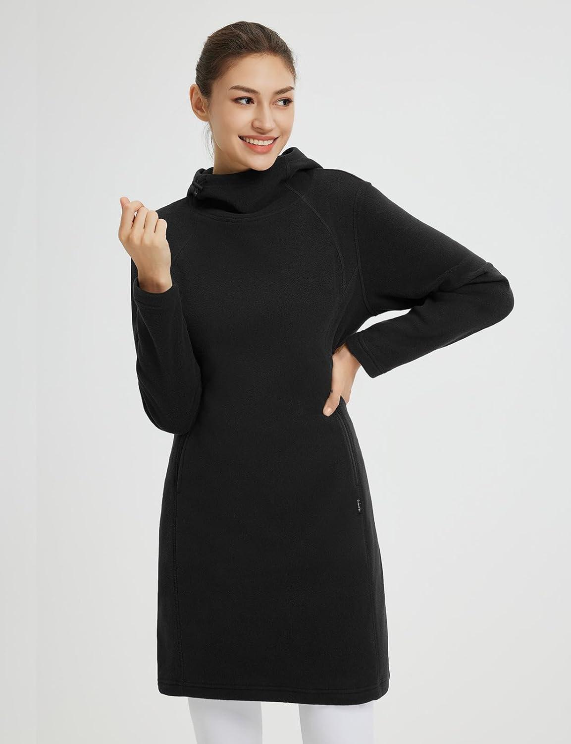 baleaf Women's Fleece Sweatshirt Dress Thermal Long Winter Fall Tunic Dresses Outfits with Pocket Hooded Pullover(Black)