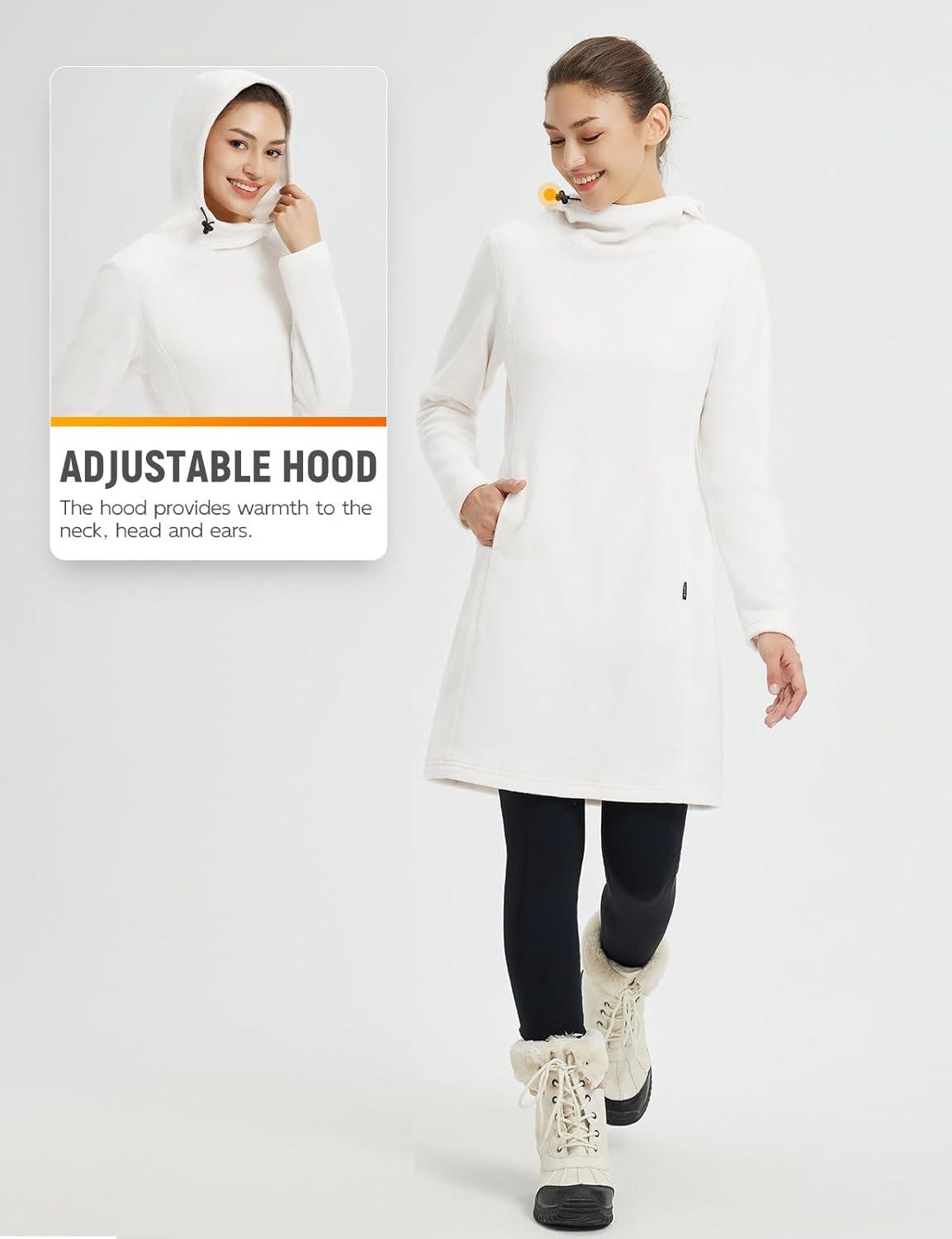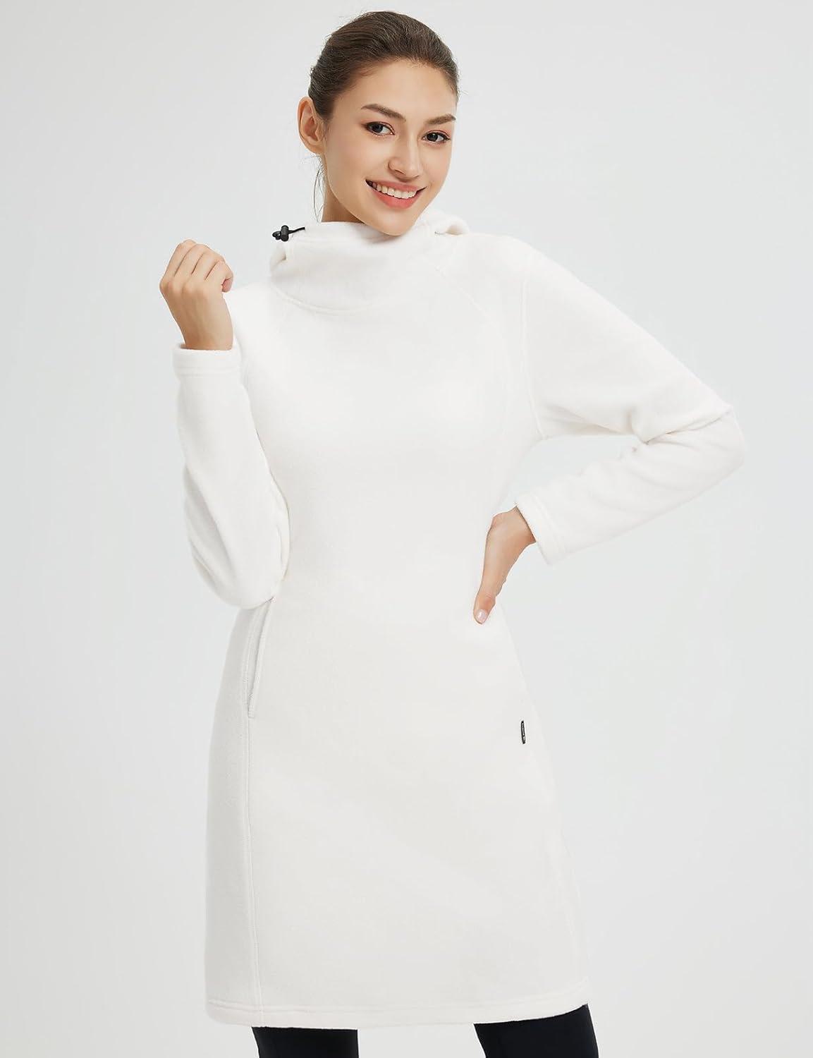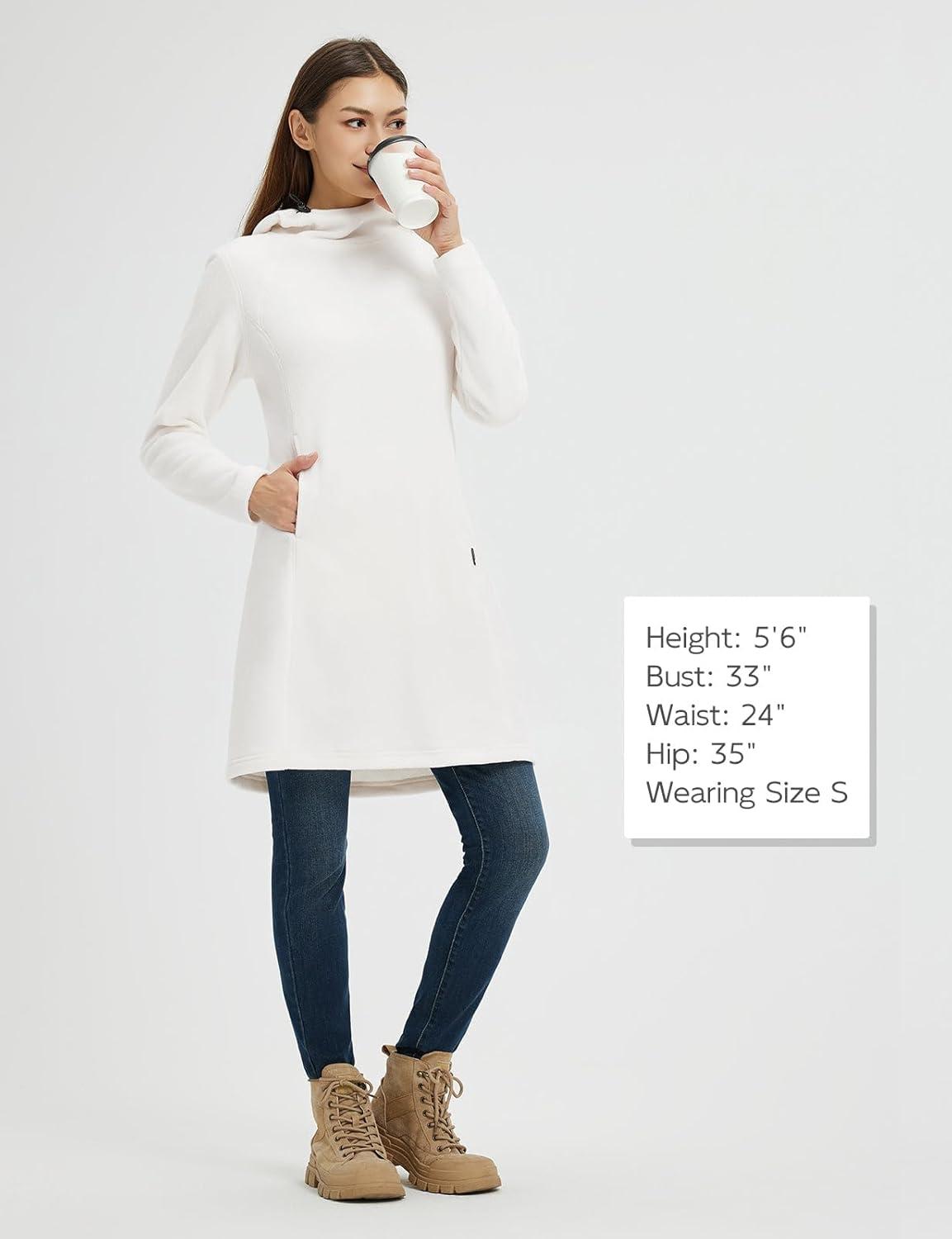 baleaf Women’s Fleece Sweatshirt Dress Thermal Long Winter Fall Tunic Dresses Outfits with Pocket Hooded Pullover(Star White)