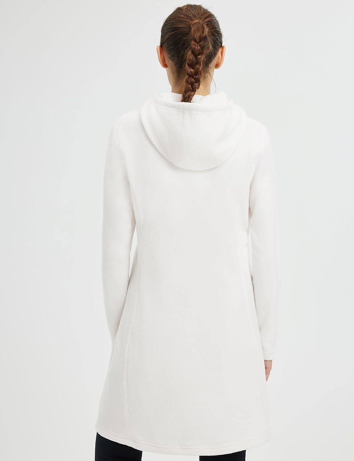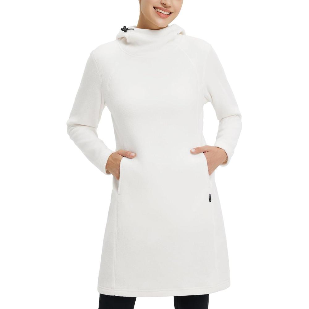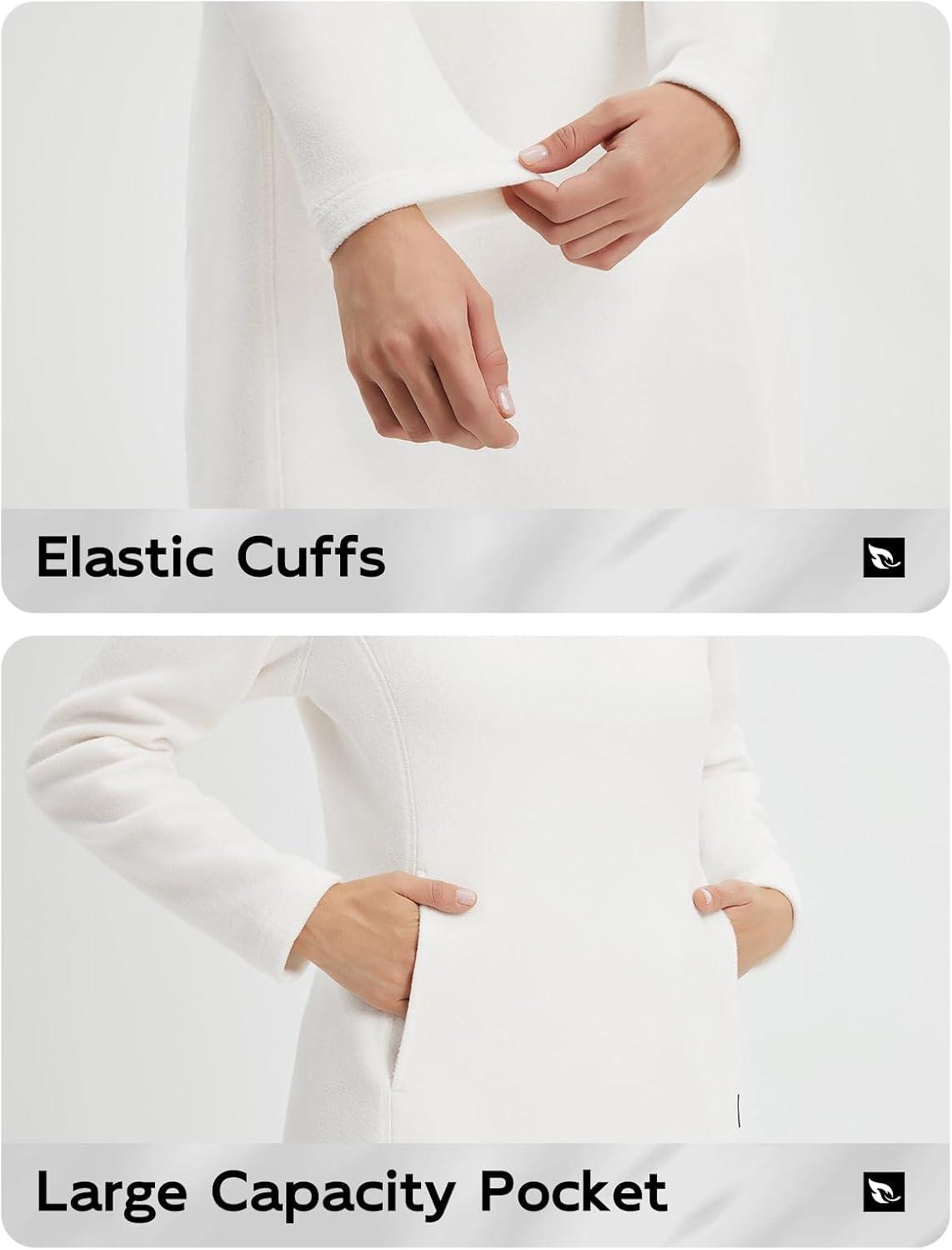 baleaf Women’s Fleece Sweatshirt Dress Thermal Long Winter Fall Tunic Dresses Outfits with Pocket Hooded Pullover(Star White)