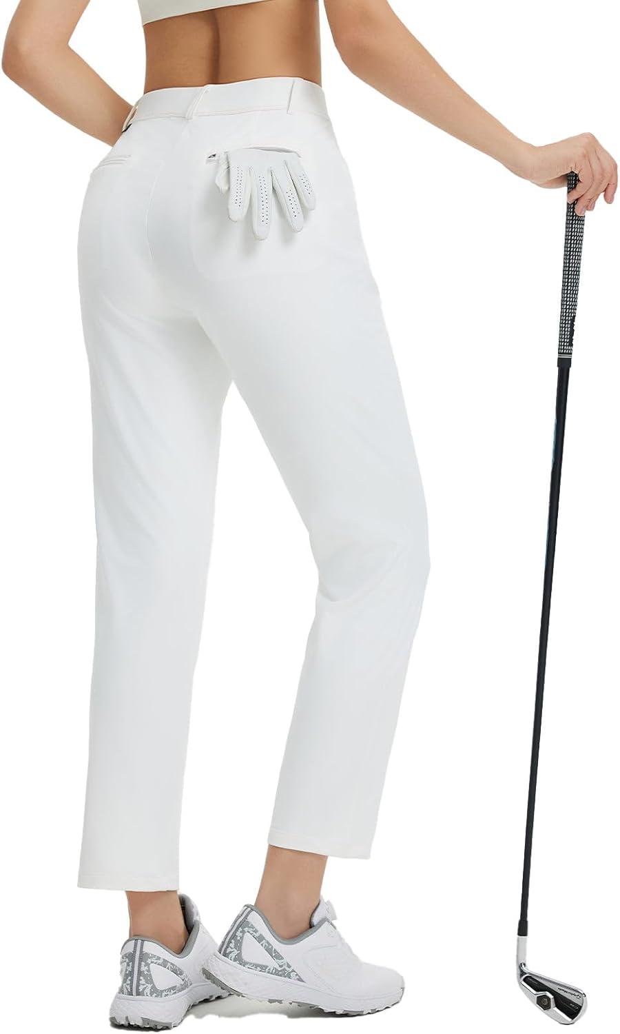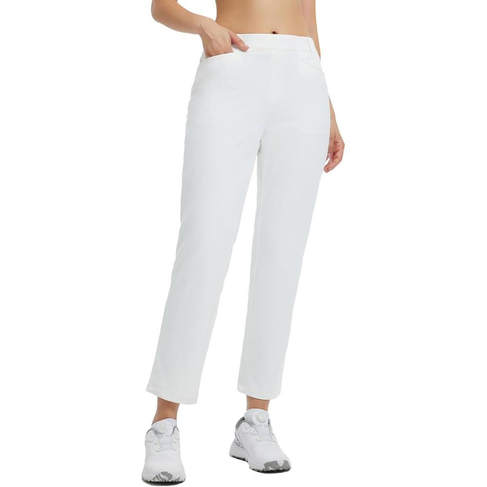 imagebaleaf Womens Golf Pant Winter Fleece Lined Pants with Belt Loops Pockets Travel Work CasualFstar White