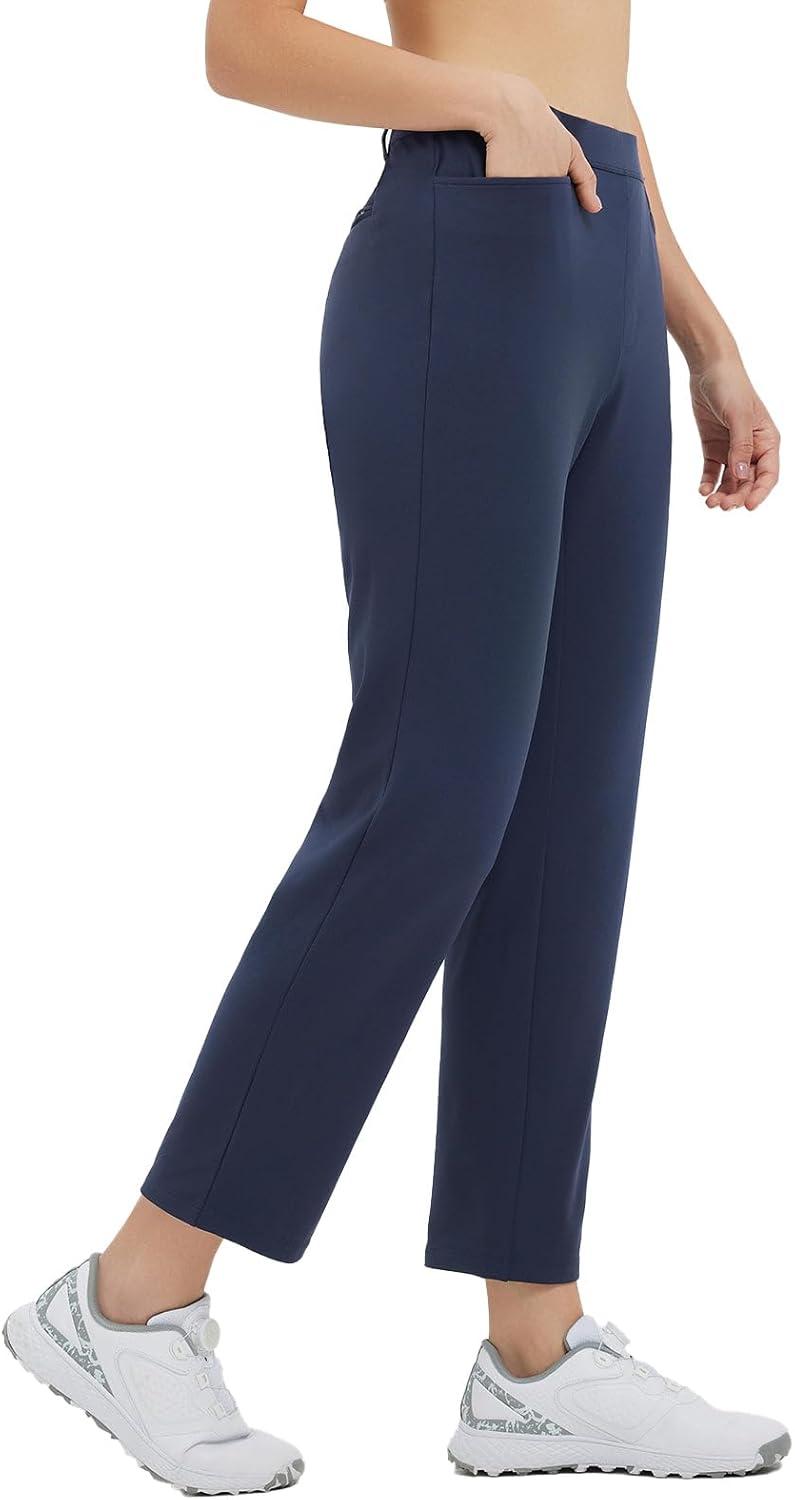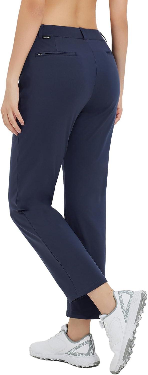 baleaf Women's Golf Pant Winter Fleece Lined Pants with Belt Loops Pockets Travel Work Casual(H-navy Blue)