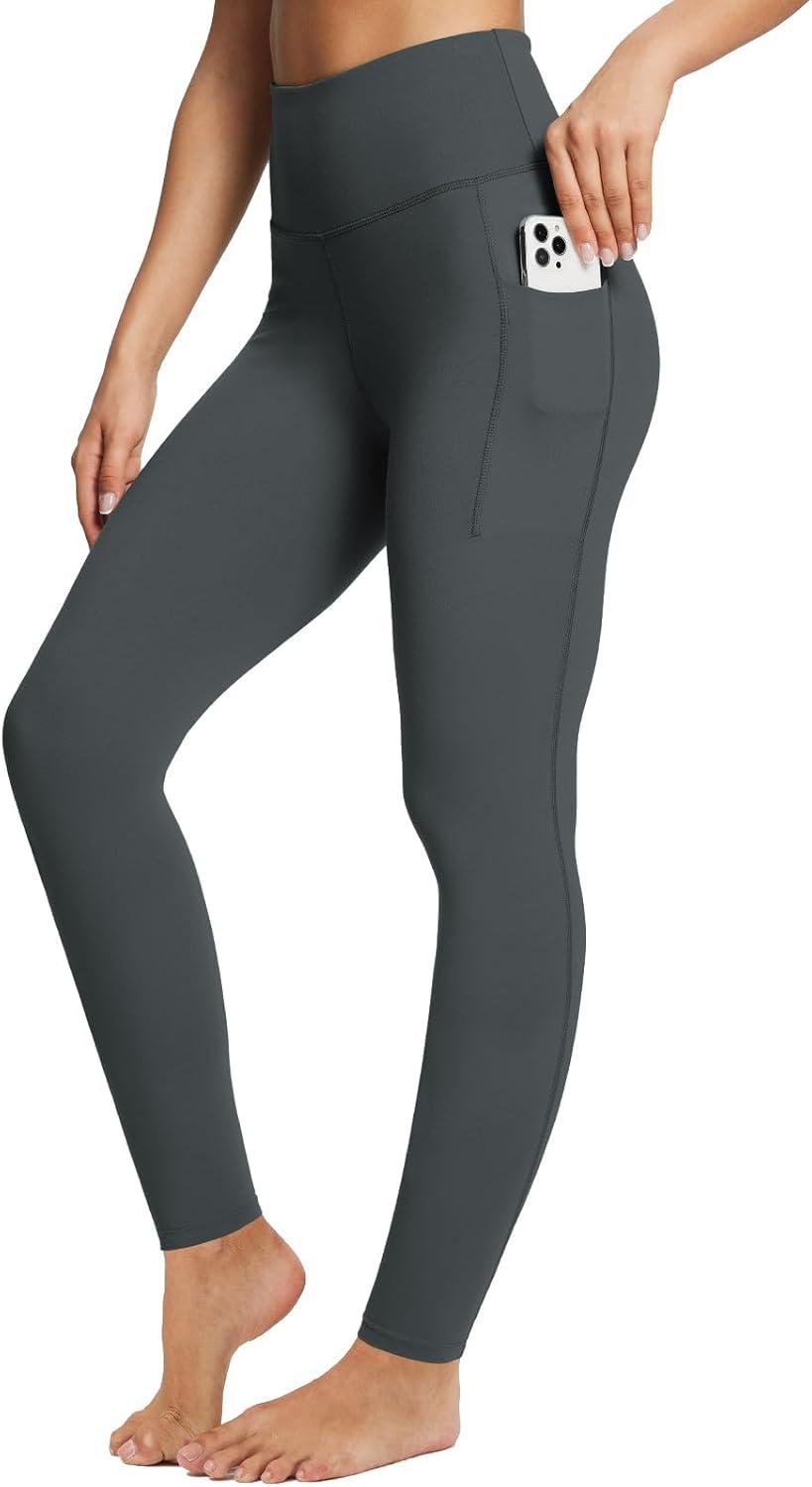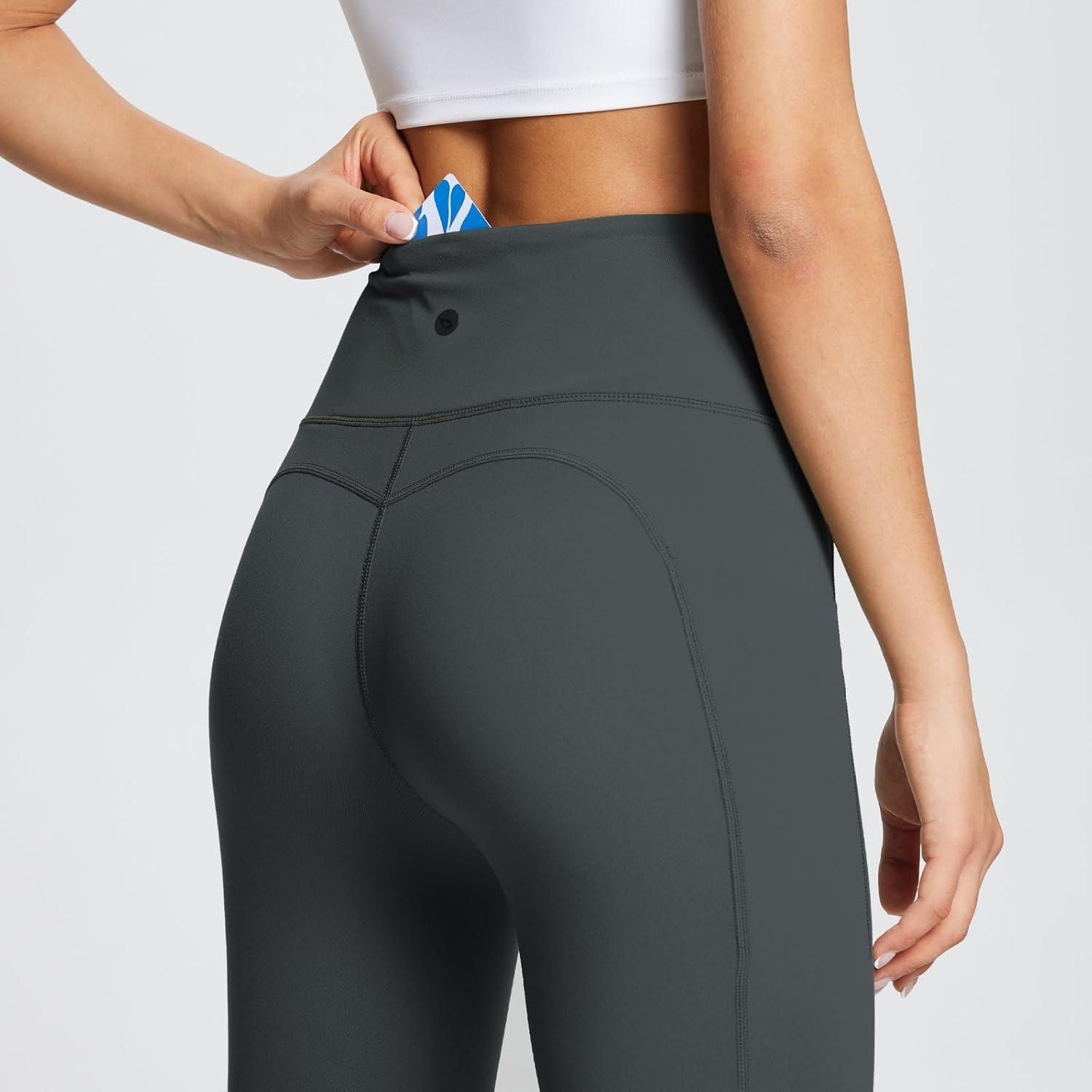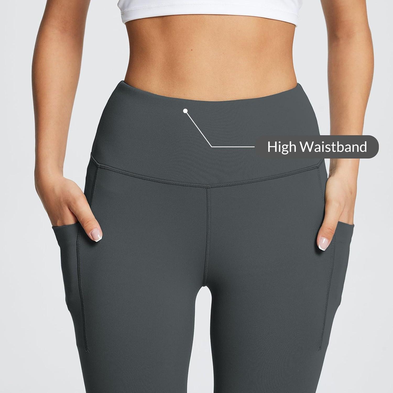 baleaf Women’s Leggings with Pockets 25″ V Cross Waist Workout Leggings Tummy Control Yoga Ankle Pants(Dark Gray)