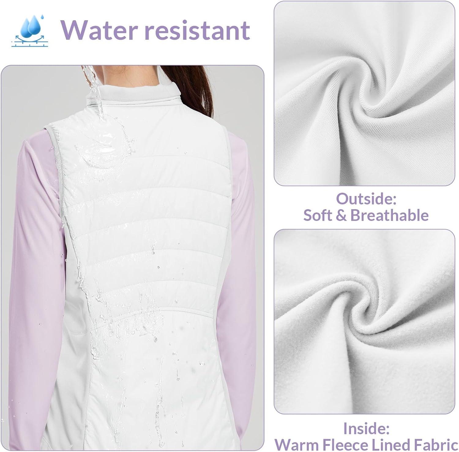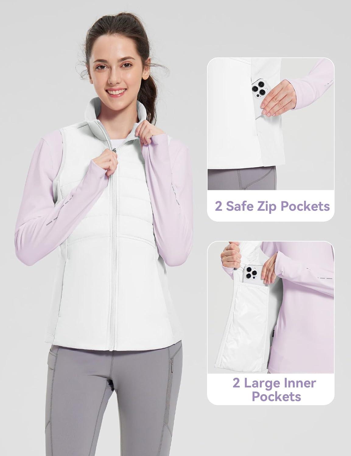 baleaf Women’s Lightweight Puffer Warm Vest Thermal Water Resistant Outwear Sleeveless Jacket Zip Pocket Winter Outdoor(White)