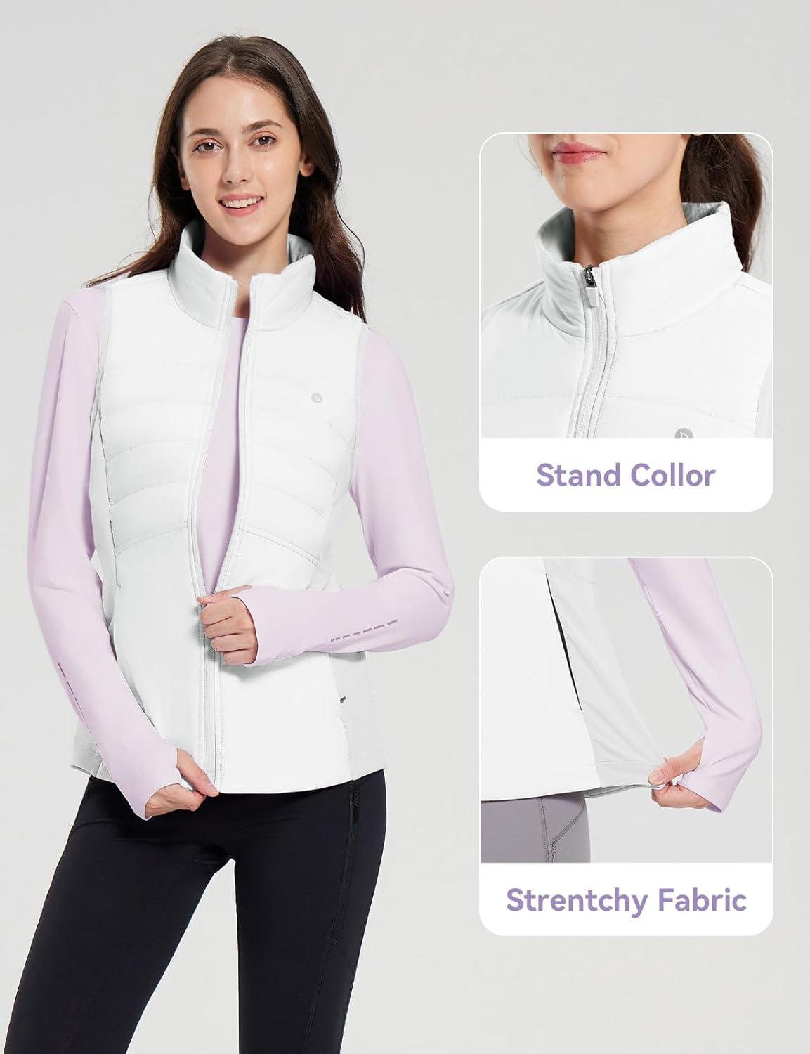 baleaf Women's Lightweight Puffer Warm Vest Thermal Water Resistant Outwear Sleeveless Jacket Zip Pocket Winter Outdoor(White)