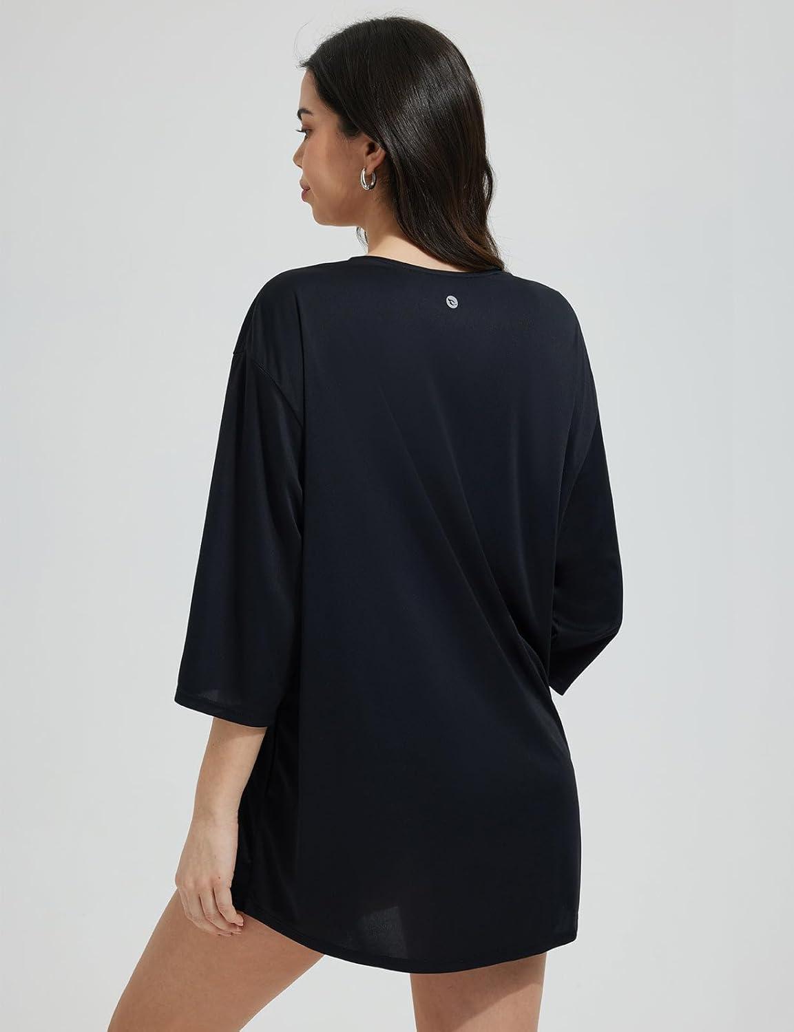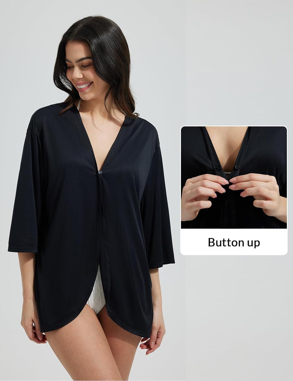 baleaf Women’s Long Sleeve Sun Shirts UPF 50+ Lightweight Open Front Cardigan with Pockets Beach Cover Up SPF Sun Wrap(Black-3/4 Sleeve)