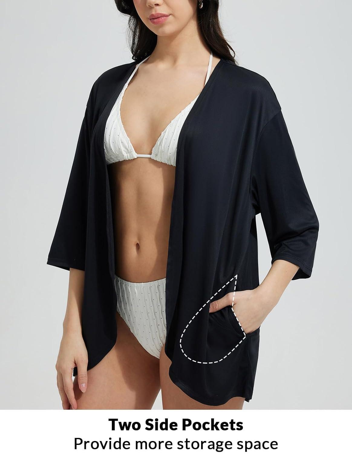 imagebaleaf Womens Long Sleeve Sun Shirts UPF 50 Lightweight Open Front Cardigan with Pockets Beach Cover Up SPF Sun WrapBlack34 Sleeve