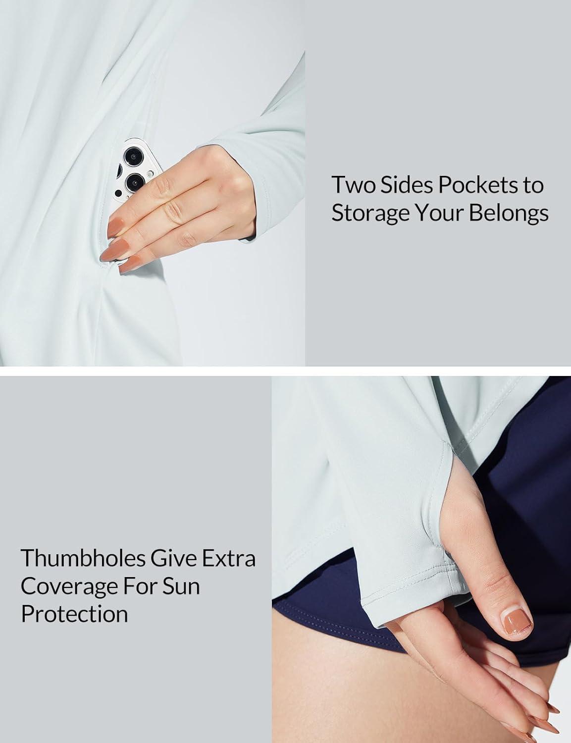 baleaf Women's Long Sleeve Sun Shirts UPF 50+ Lightweight Open Front Cardigan with Pockets Beach Cover Up SPF Sun Wrap(Grey-long Sleeve)