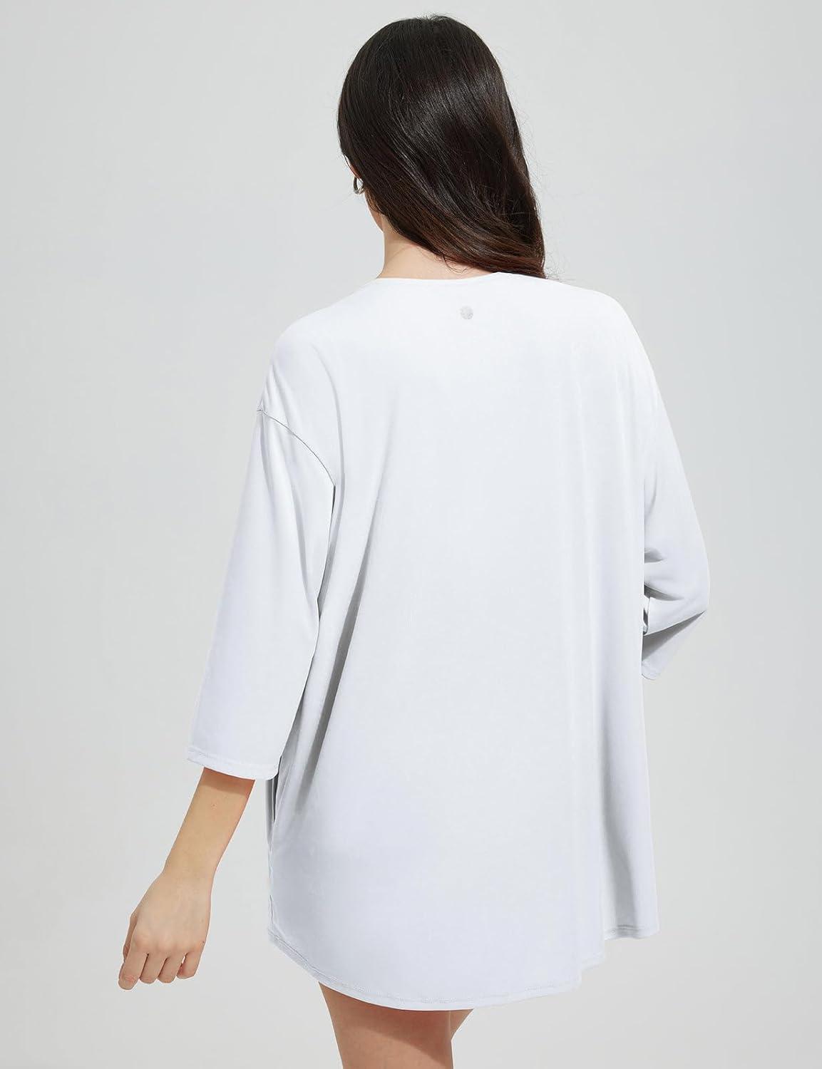 baleaf Women’s Long Sleeve Sun Shirts UPF 50+ Lightweight Open Front Cardigan with Pockets Beach Cover Up SPF Sun Wrap(White-3/4 Sleeve)