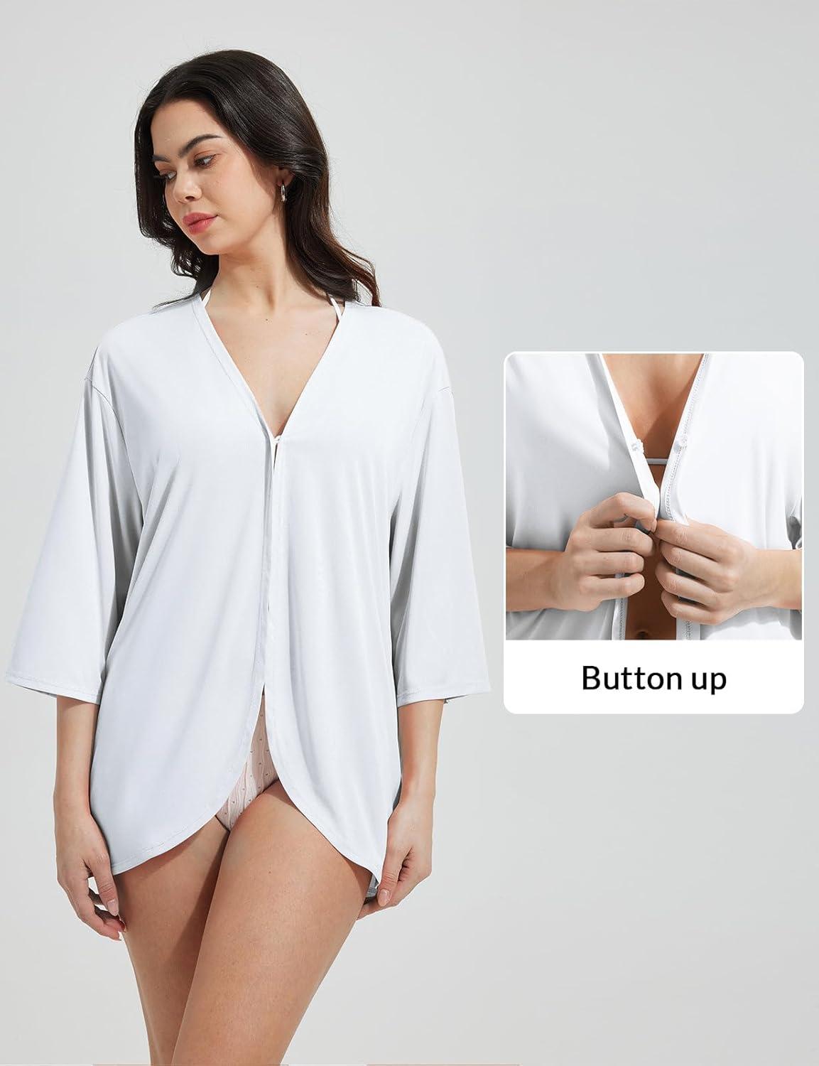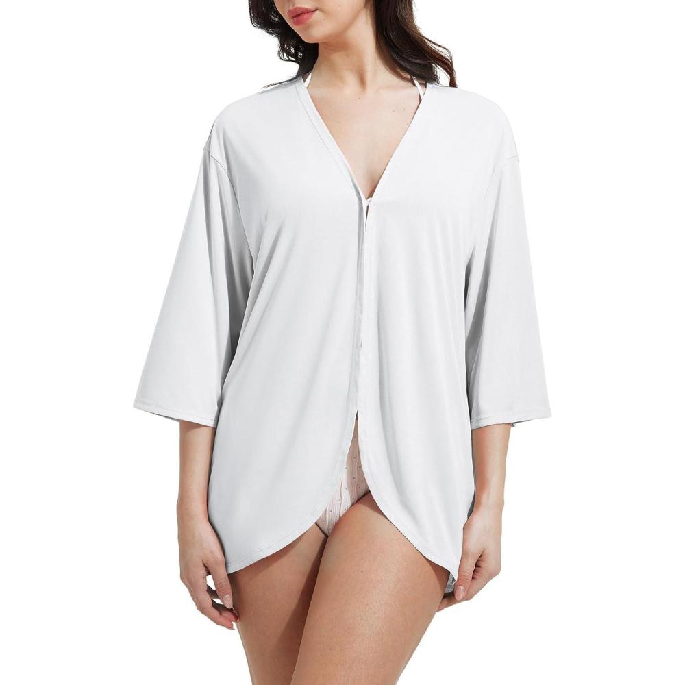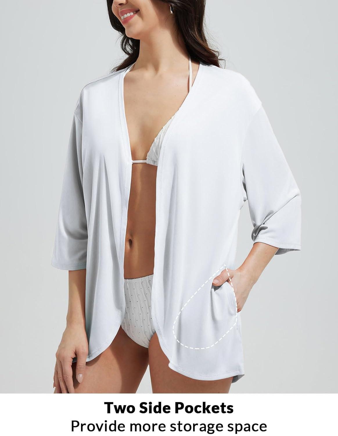 imagebaleaf Womens Long Sleeve Sun Shirts UPF 50 Lightweight Open Front Cardigan with Pockets Beach Cover Up SPF Sun WrapWhite34 Sleeve