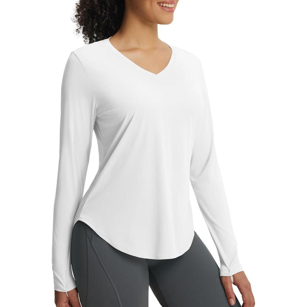 imagebaleaf Womens Long Sleeve V Neck Sun Shirts UPF50 Lightweight Quick Dry UV Protection Rash Guard Workout Hiking Running TopWhite