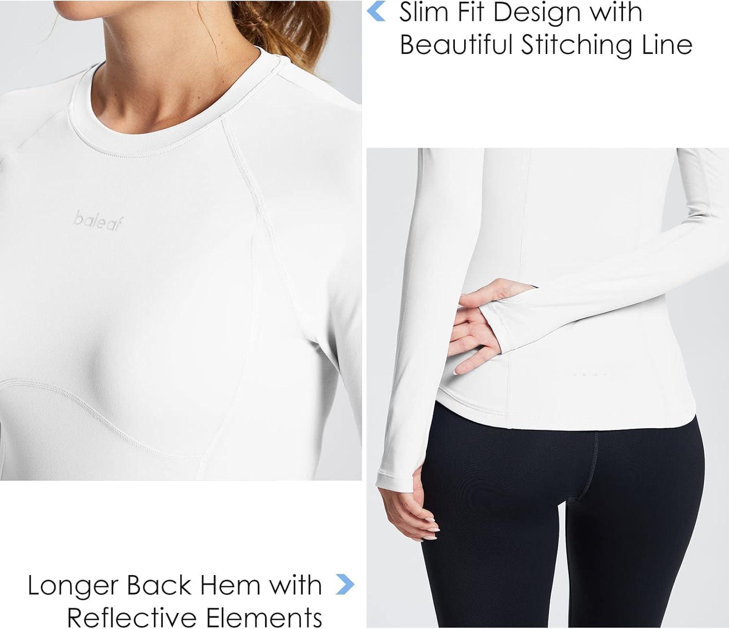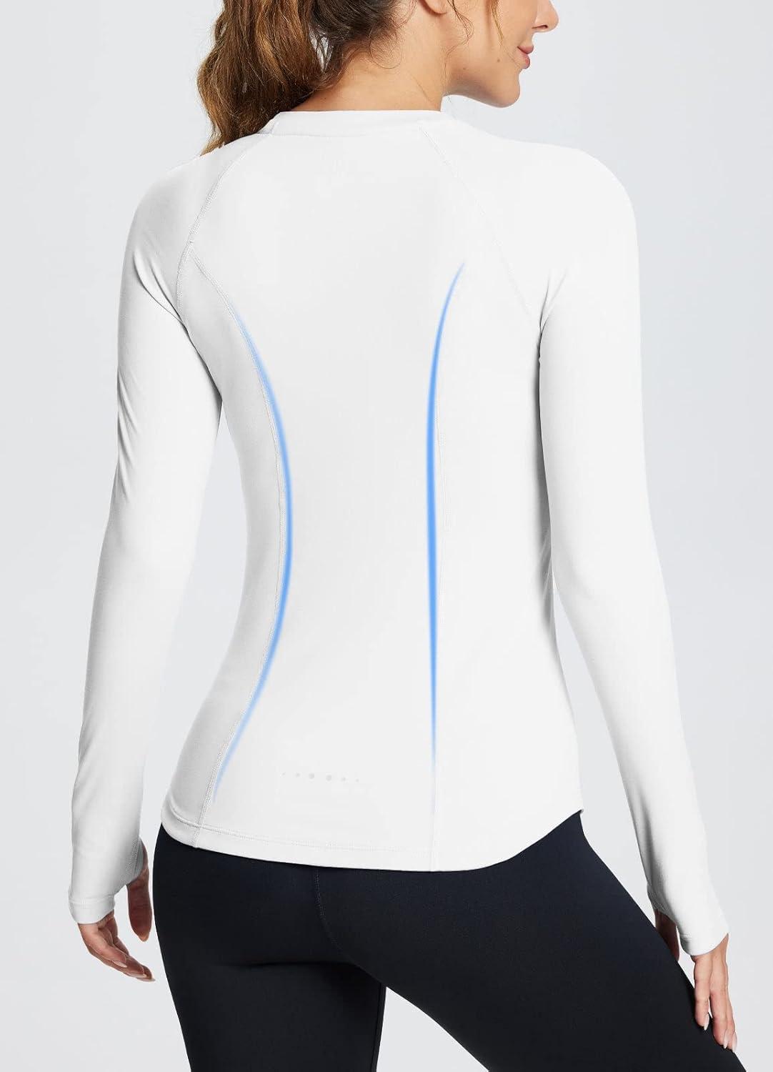 baleaf Women's Long Sleeve Workout Tops Compression Running Shirts Fitted Athletic Warm Thumbholes Quick Dry Yoga(White-no Pocket)