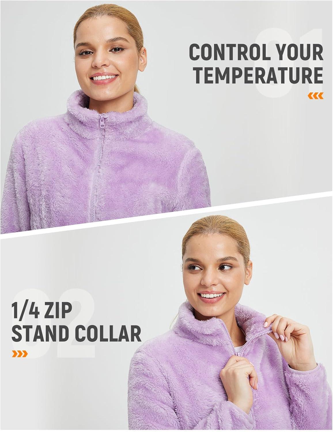 imagebaleaf Womens Quarter Zip Sherpa Fleece Pullover Lightweight Fuzzy Winter Warm Sweatshirt with Zipper Kangaroo PocketLight Purple