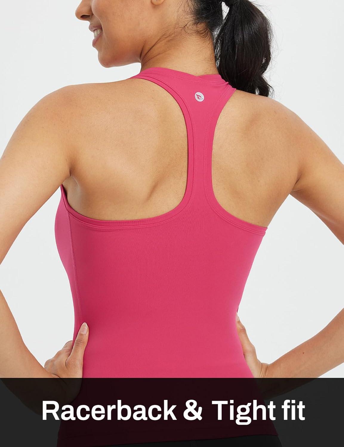 baleaf Women's Racerback Workout Tank Tops Racer Back Yoga Gym Athletic Running Sleeveless Shirts Camisole(Rose Red)